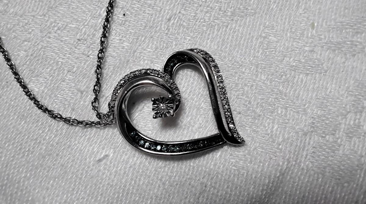 Diamond and Blue Diamonds Heart With ..25ct  Solitaire  18" 925 Necklace