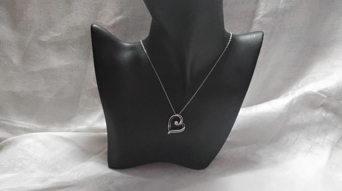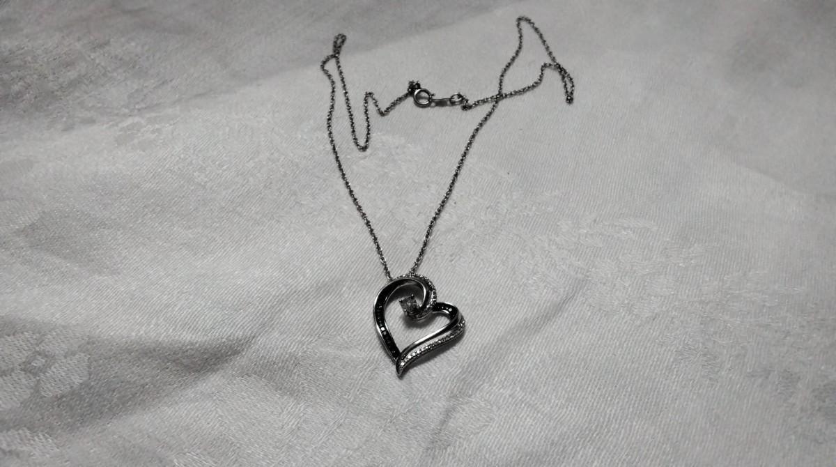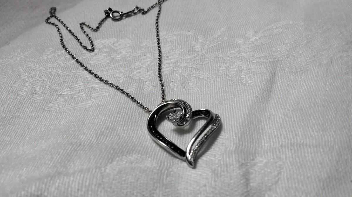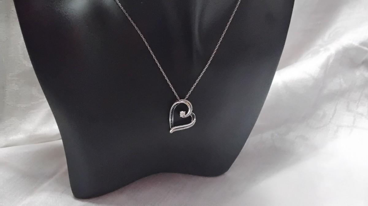 Diamond and Blue Diamonds Heart With ..25ct Solitaire 18" 925 Necklace