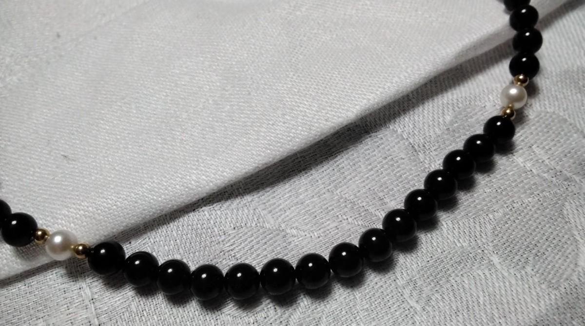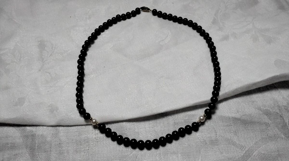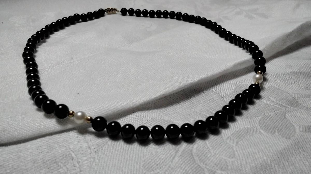 IPS 18" Onyx And Pearl Necklace 14K Beads And Clasps