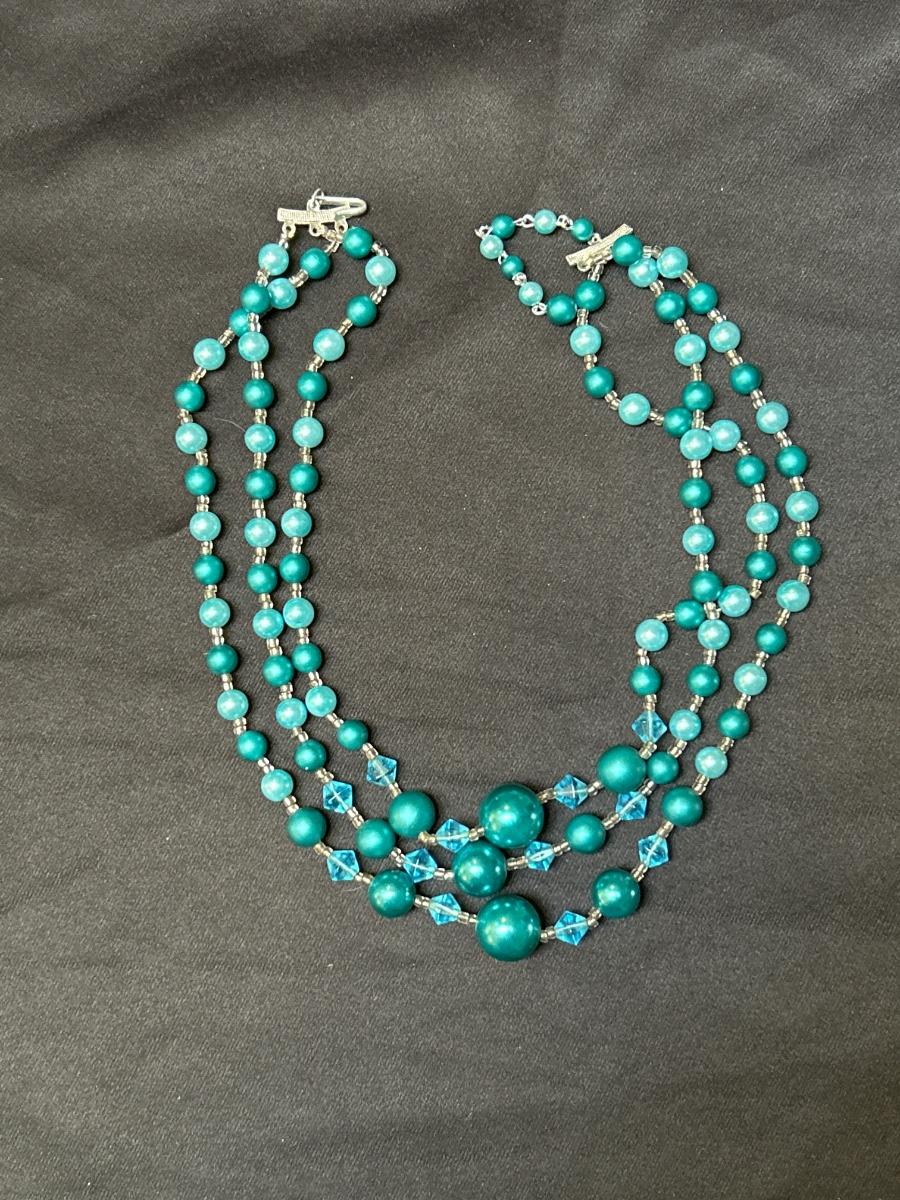 16” Blue/Teal/Silver Beaded Fashion Necklace