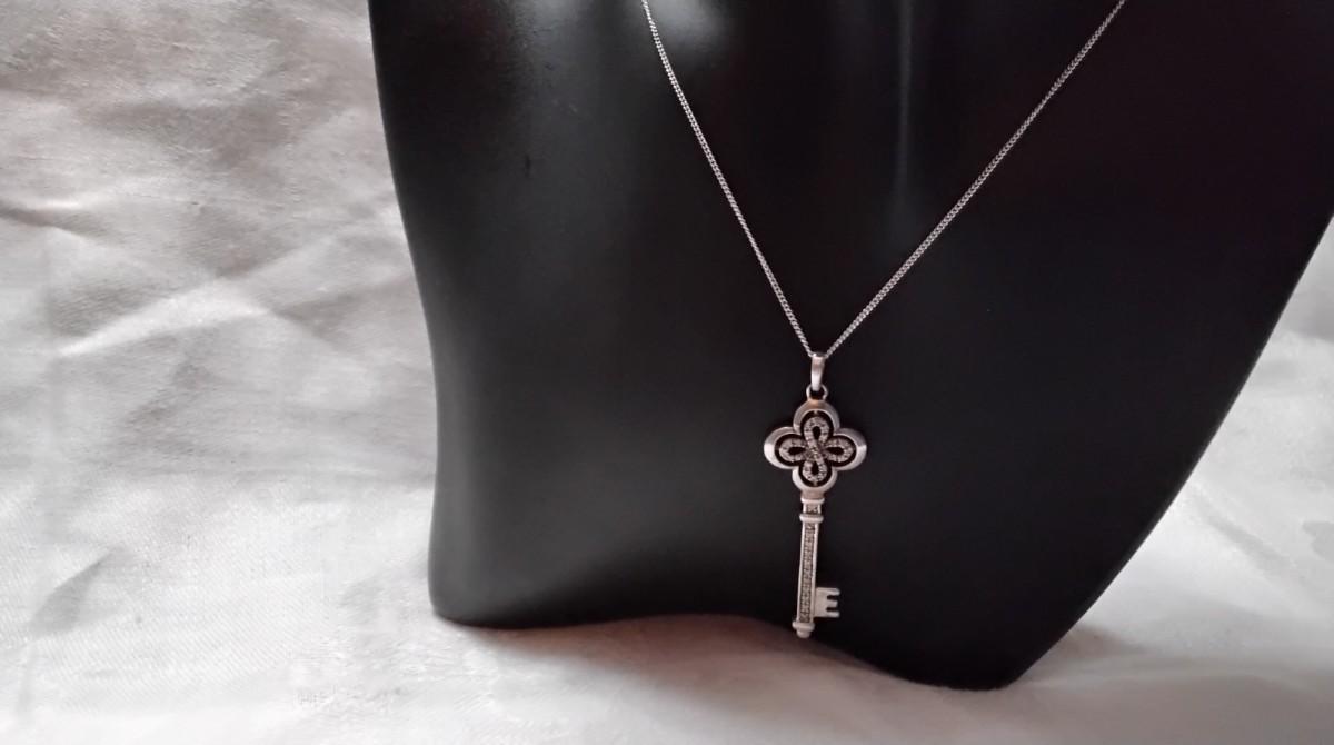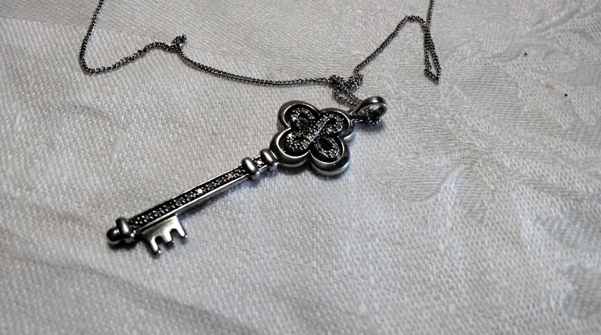 One of a Kind Vintage Diamond Key 18" 925 Necklace
