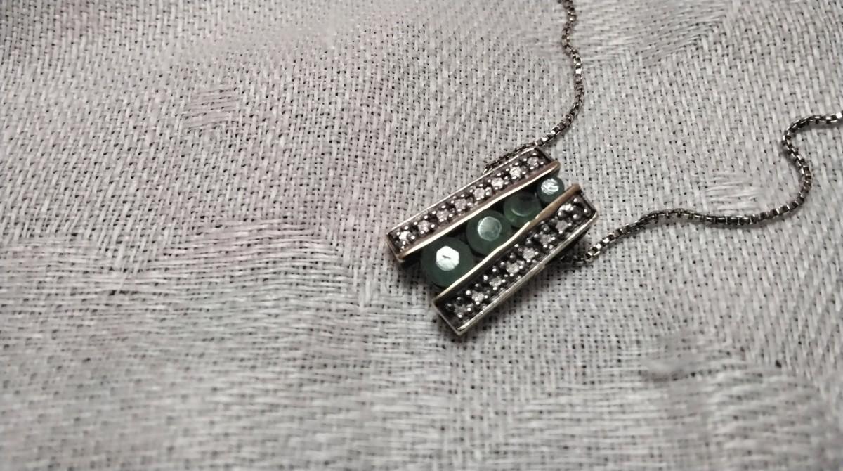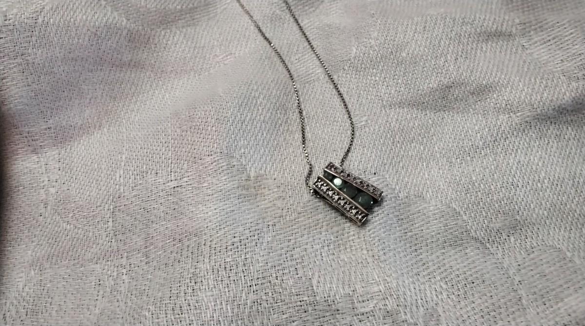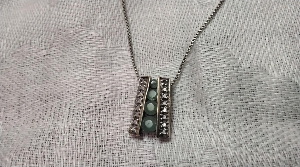Gorgeous Vintage Ross Simons Jade and Diamond 16" Italian 925 Necklace