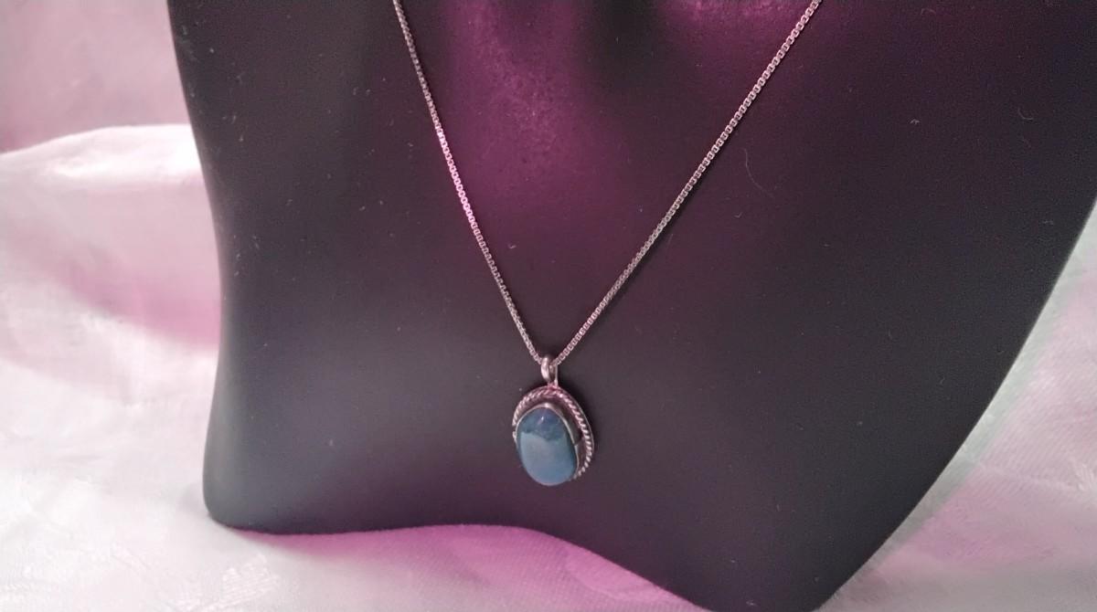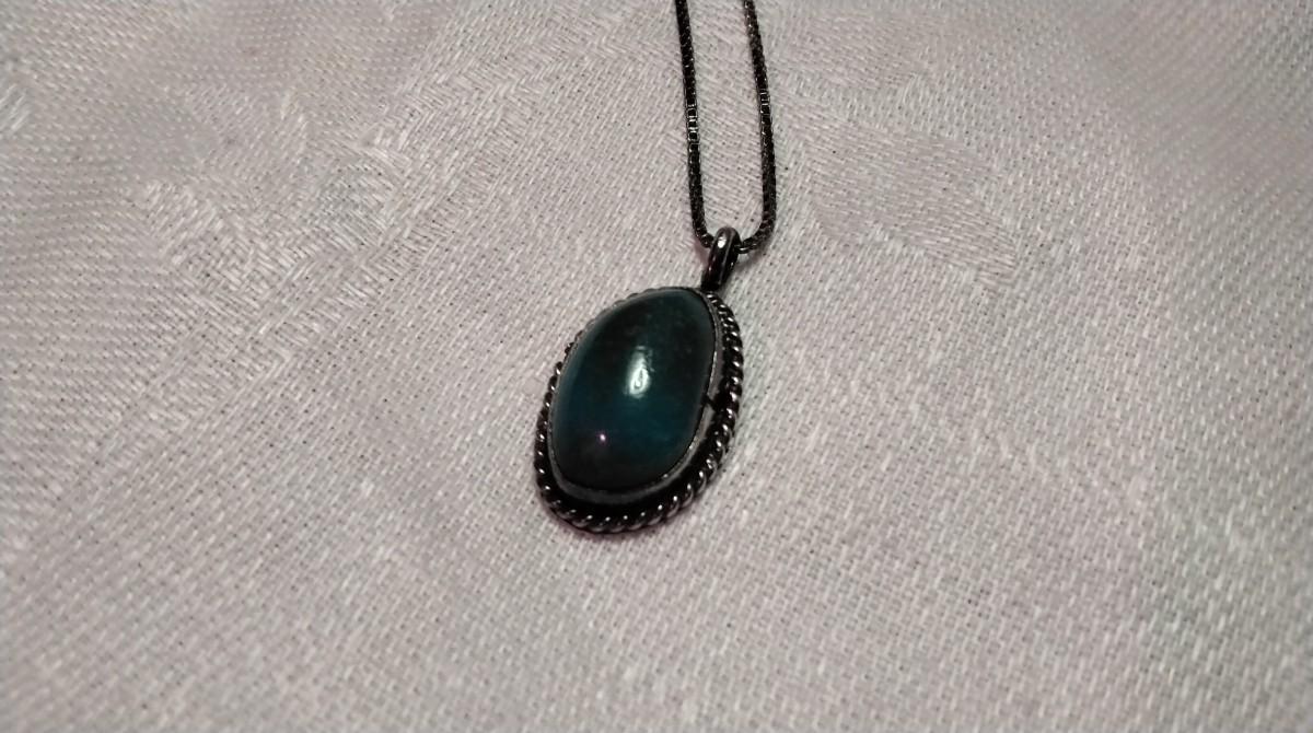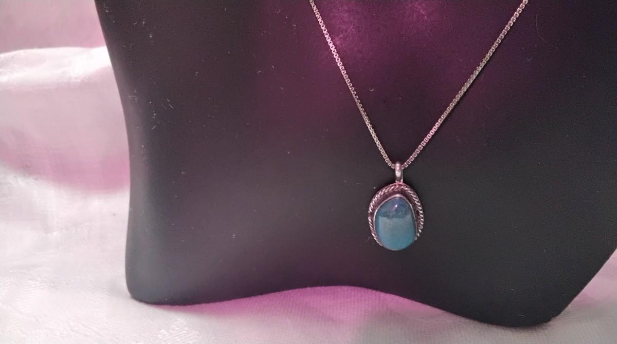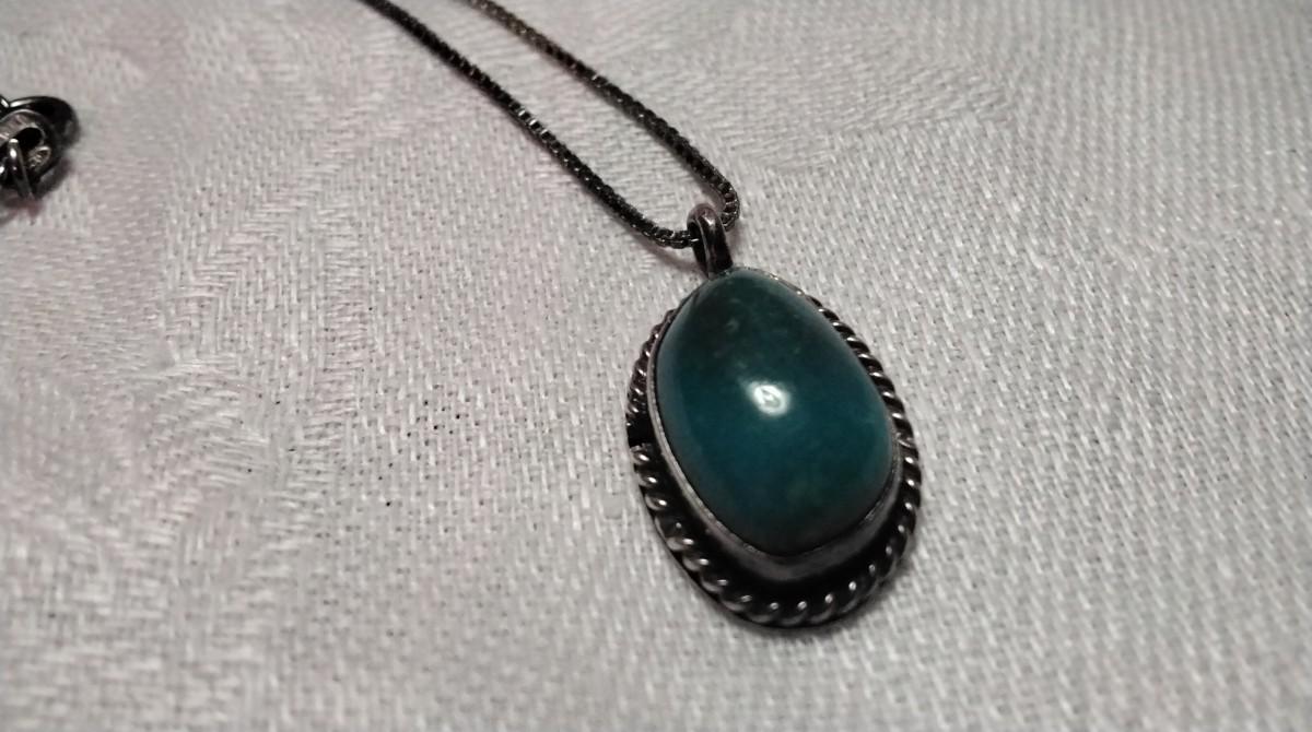 Beautiful Turquoise Stone in 925 Navaho Signed Pendant  17" 925 Italian Necklace