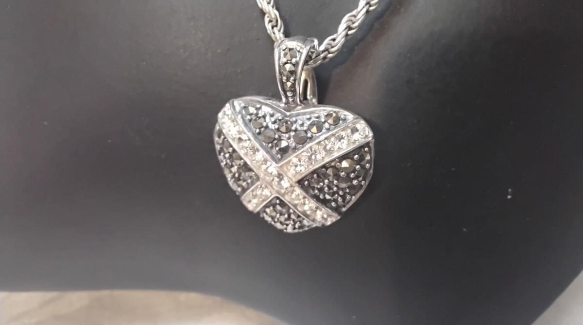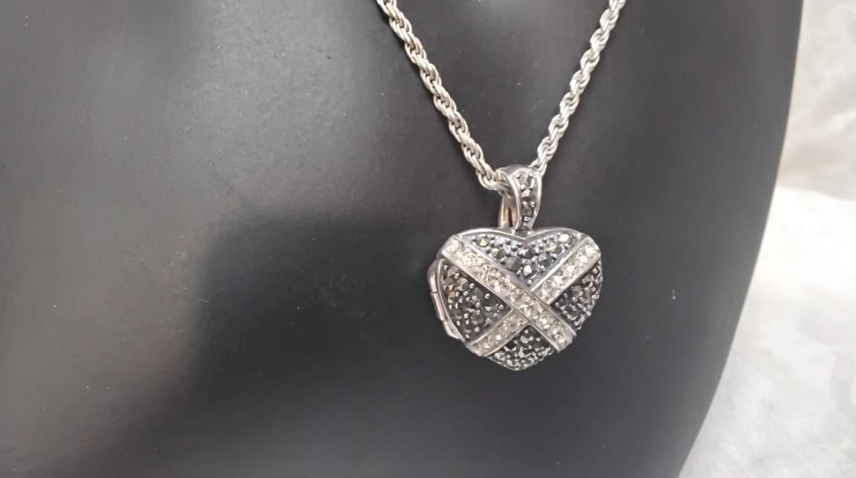 Stunning Vintage Marcasite Locket 24" 925 Necklace