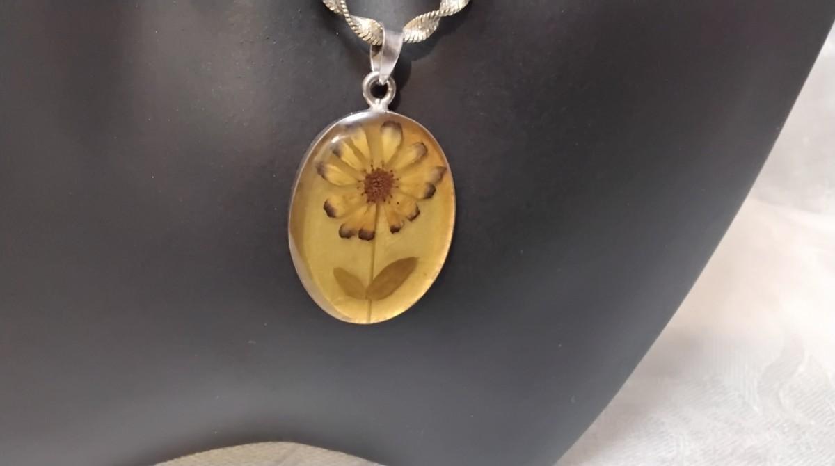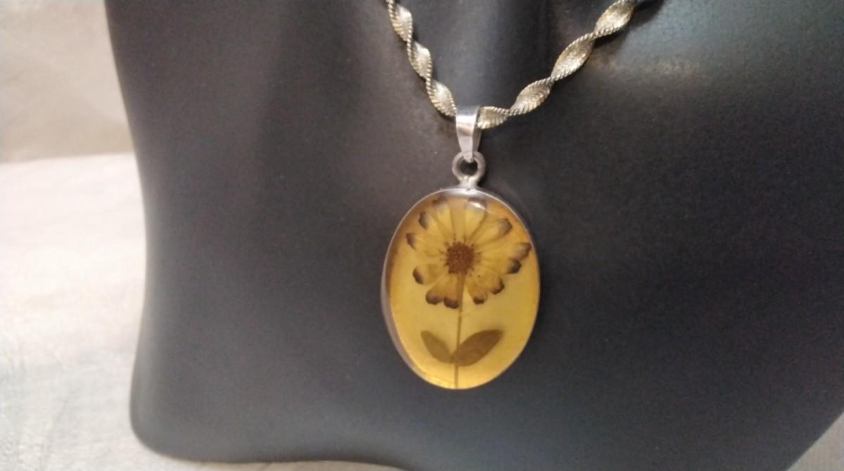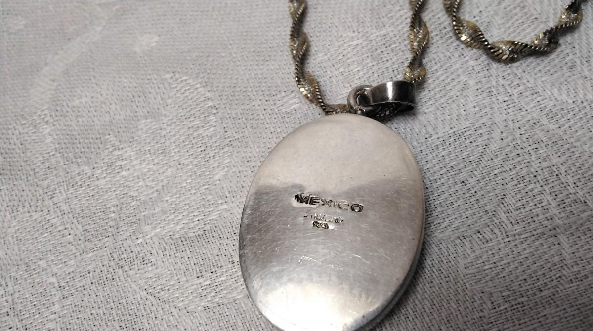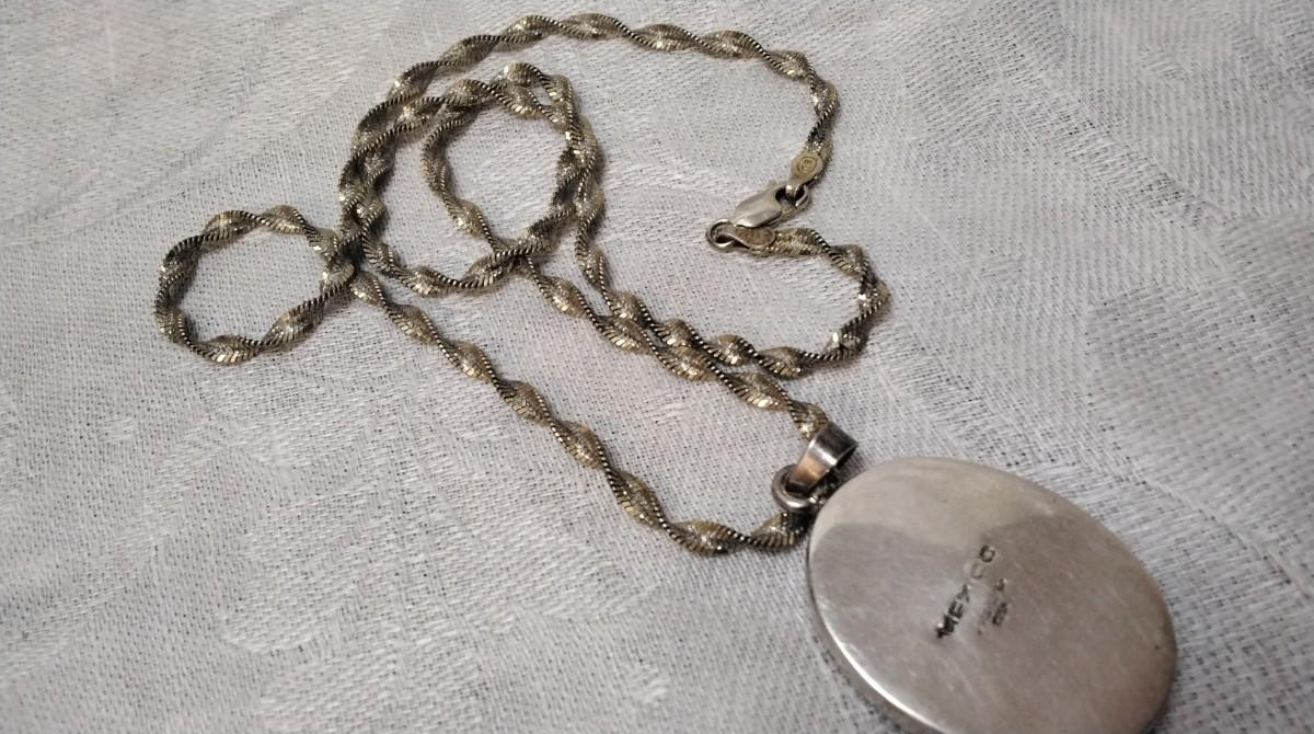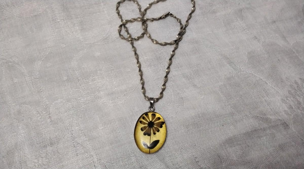 Beautiful vintage necklace. Pendant has a thick acrylic cover over the flower with Mexico 925 Backing.