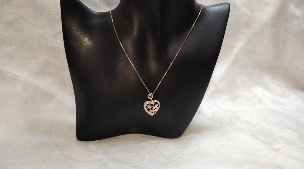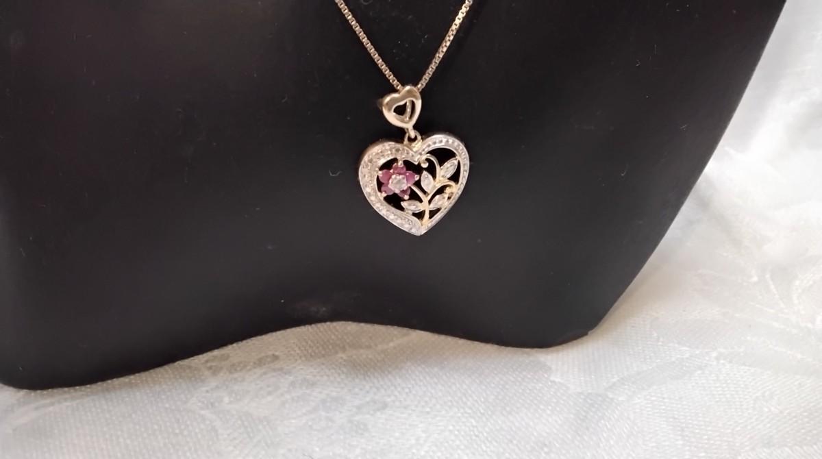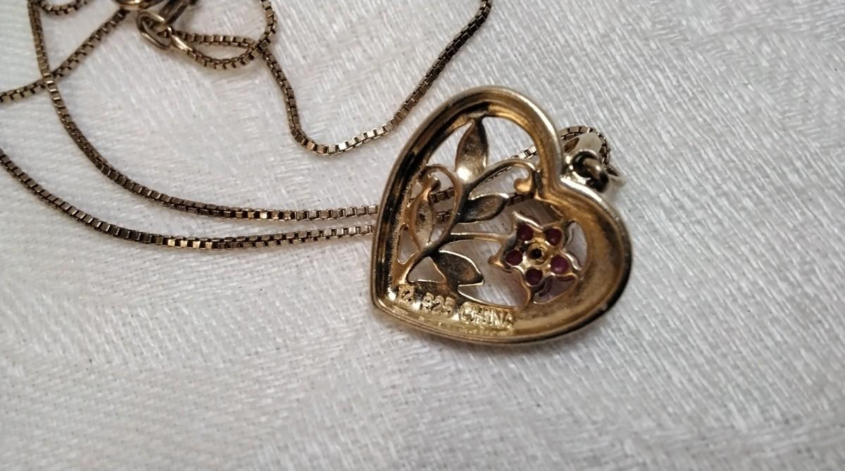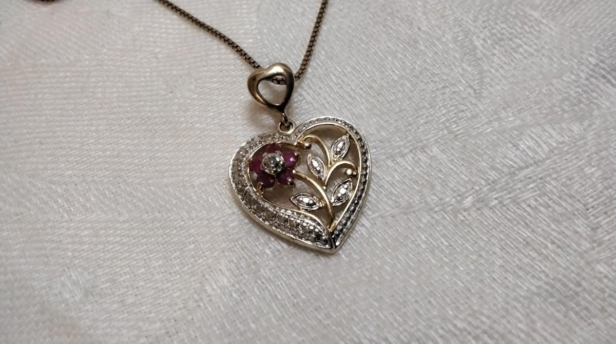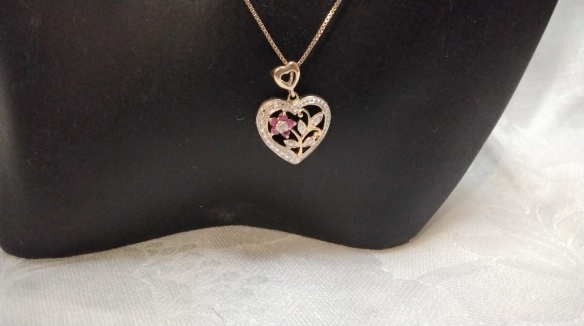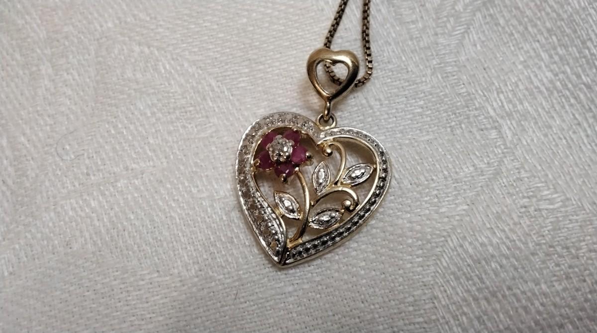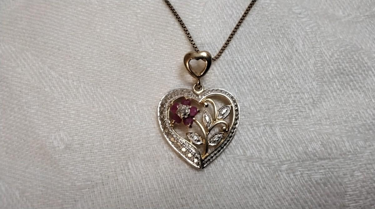 Vintage Ross Simons Diamond and Ruby Heart 18" Gold Vermeil Necklace