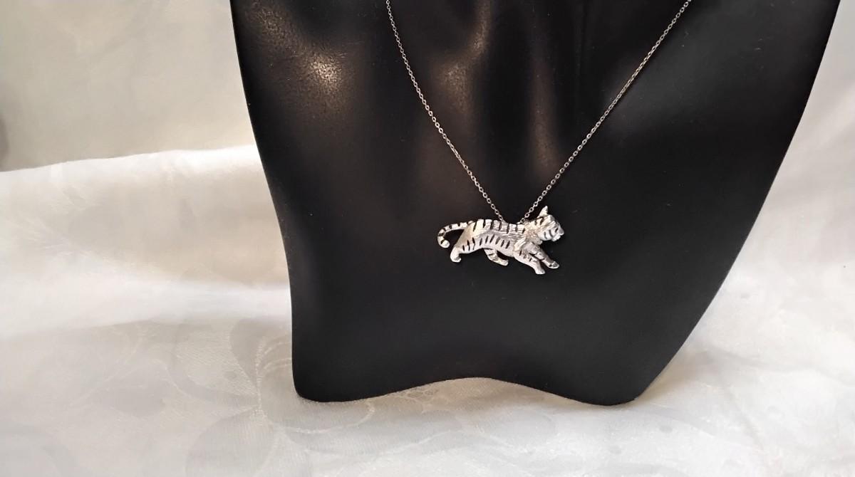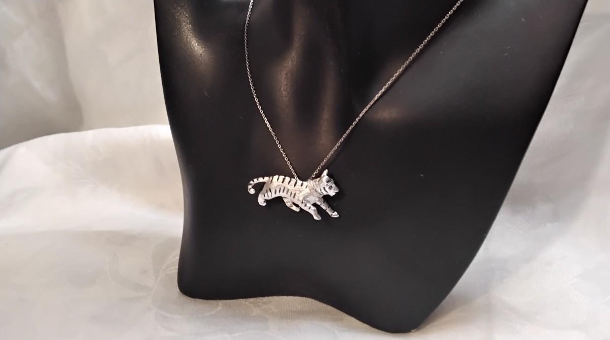 Ruby Eye Tiger Adorned By Diamond Collar 925 18" Necklace