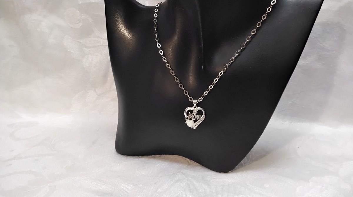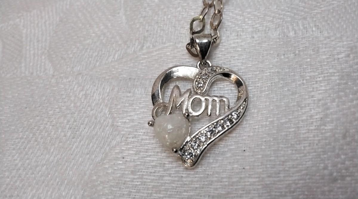 Heart Shaped Opal Mom on 19" Italian 925 Necklace