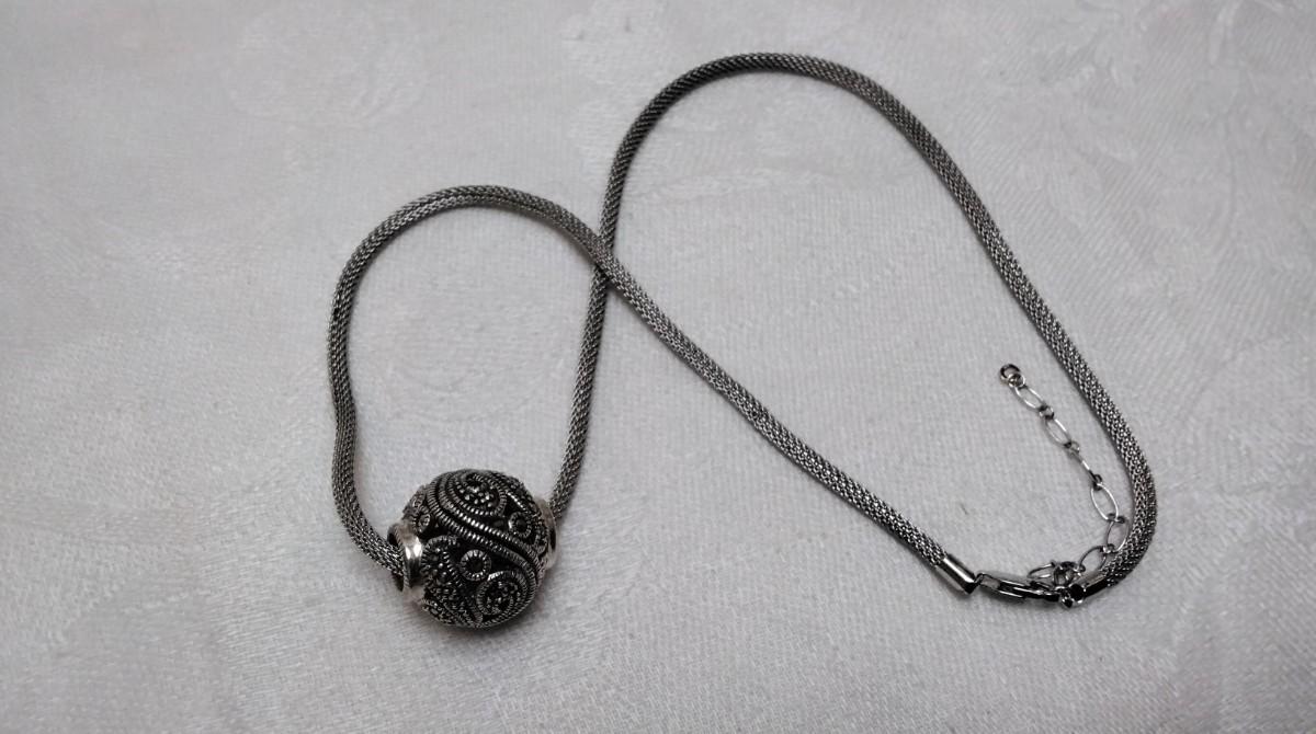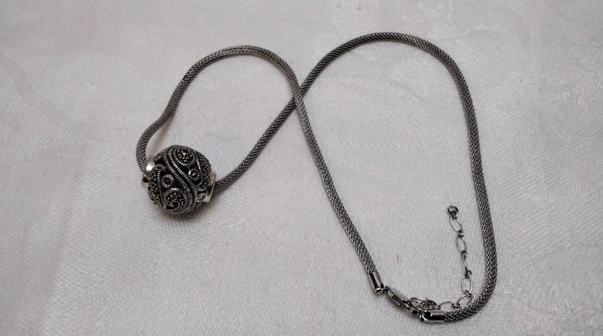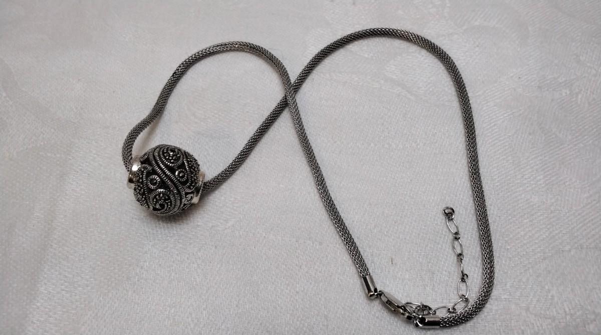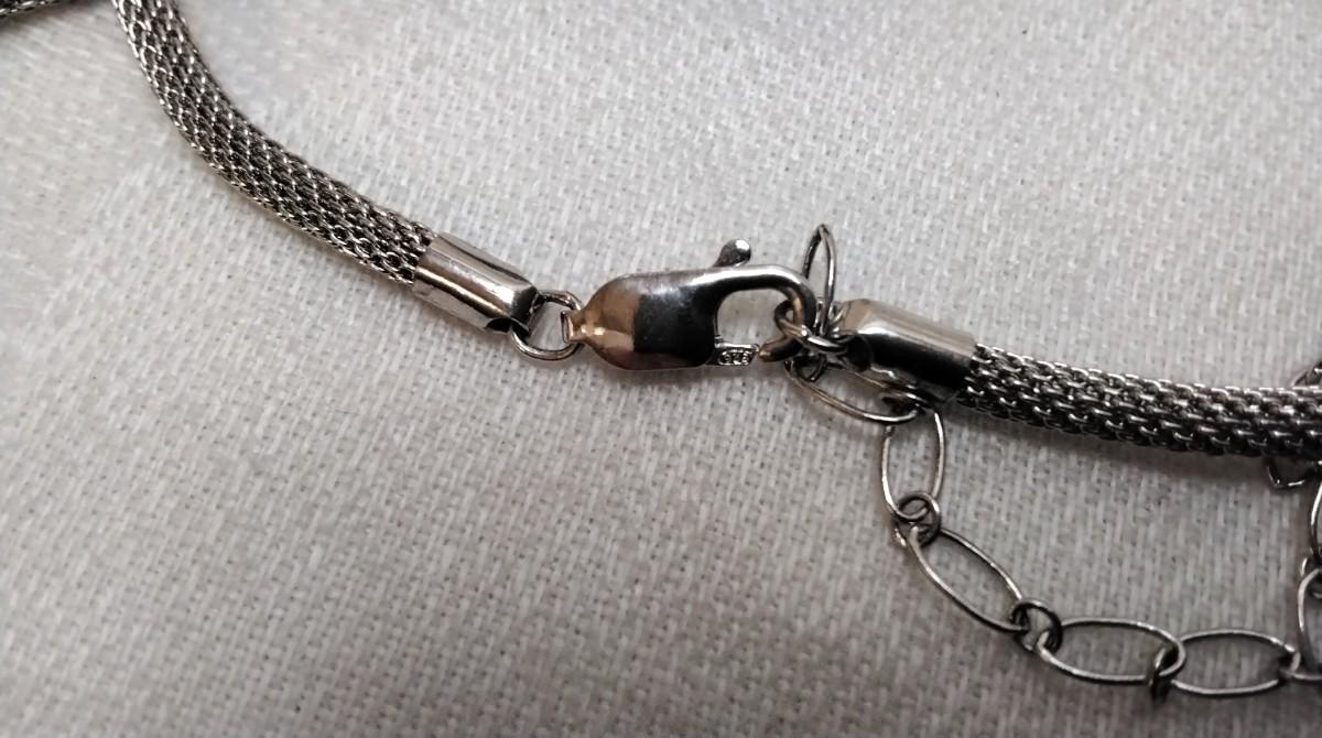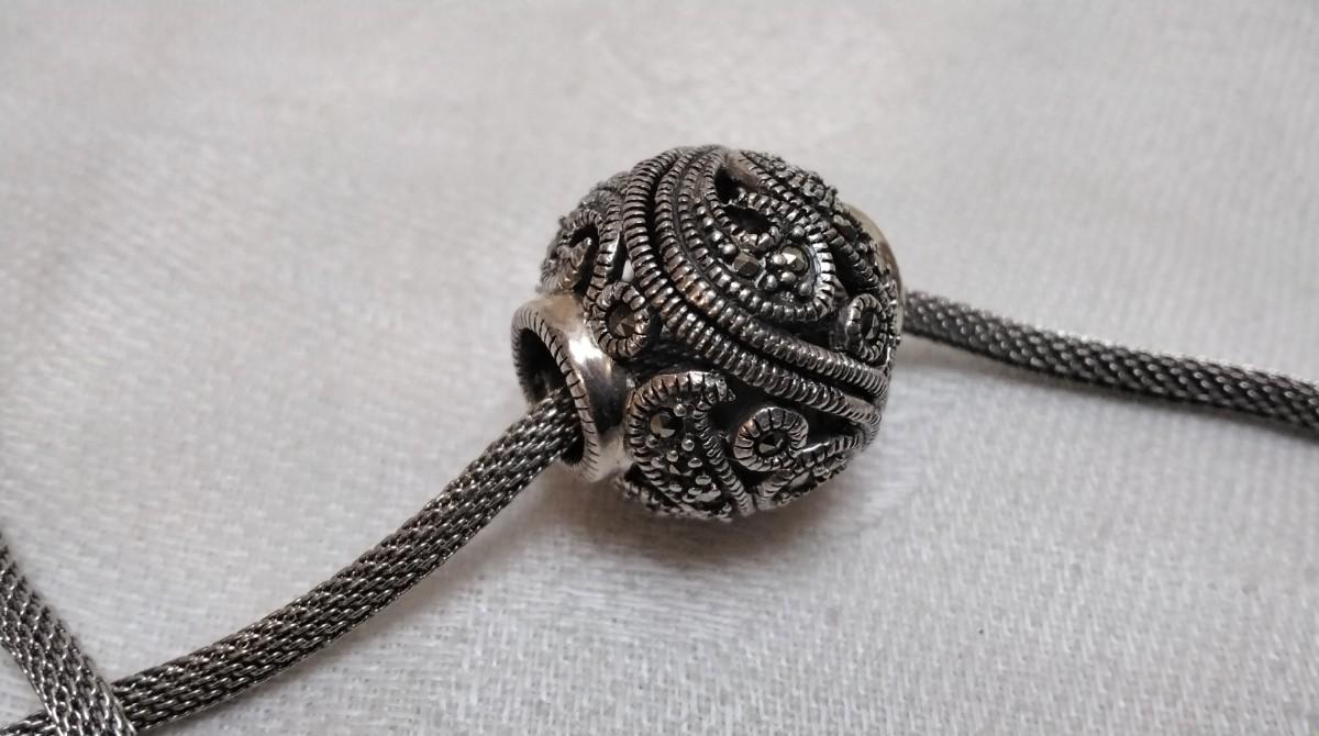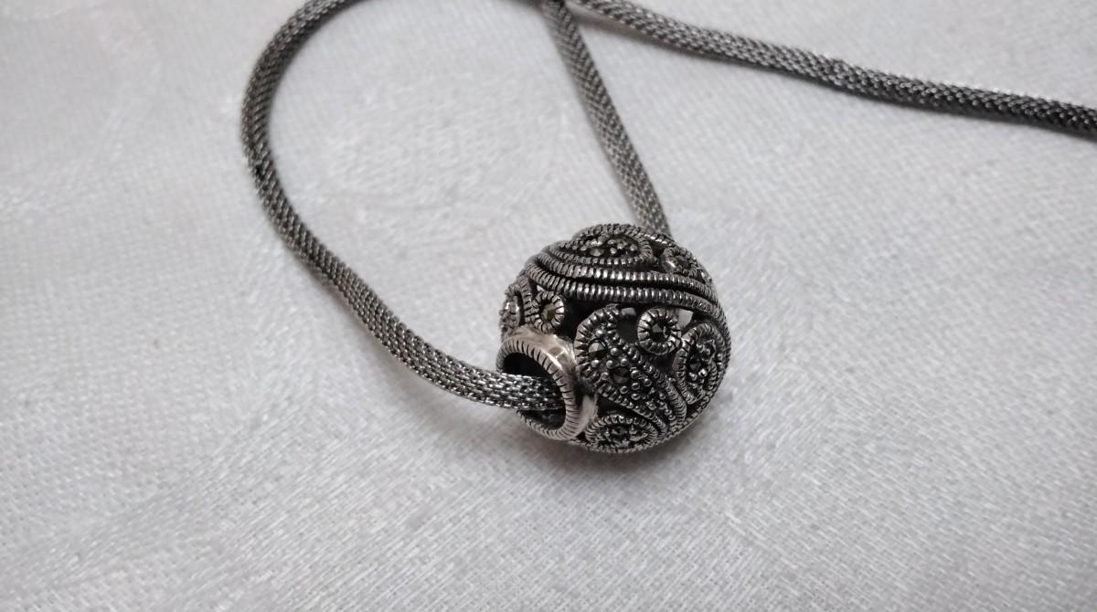 Unique Marcasite Slider On Mesh 925 17" Necklace