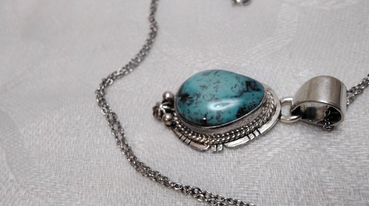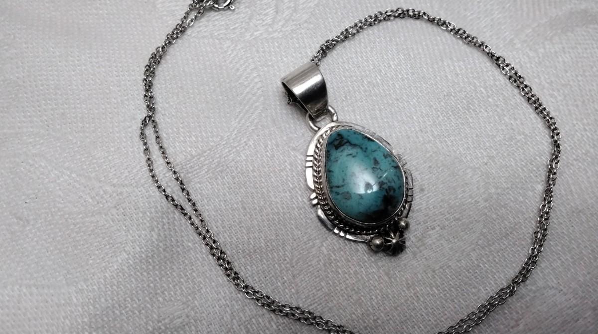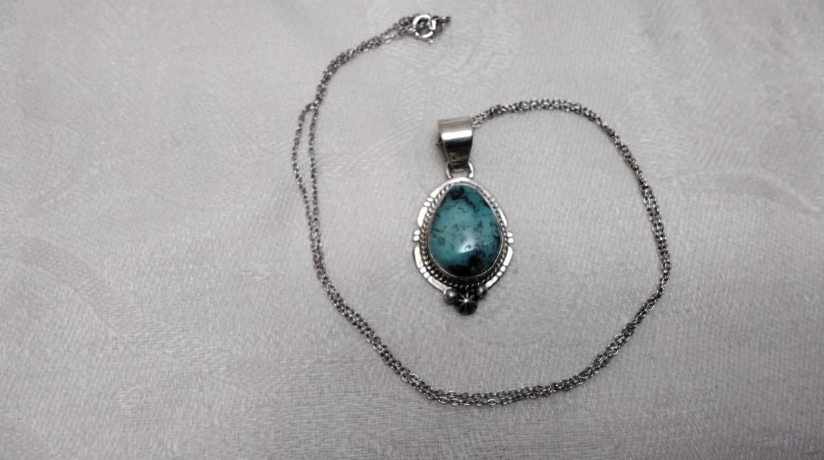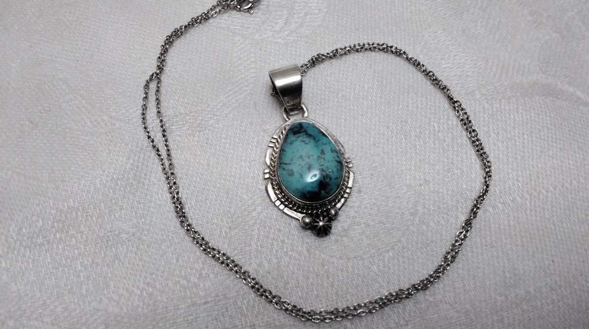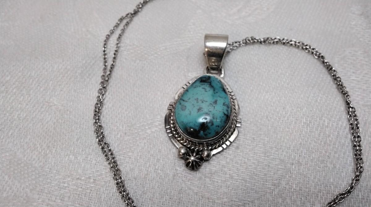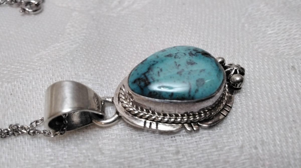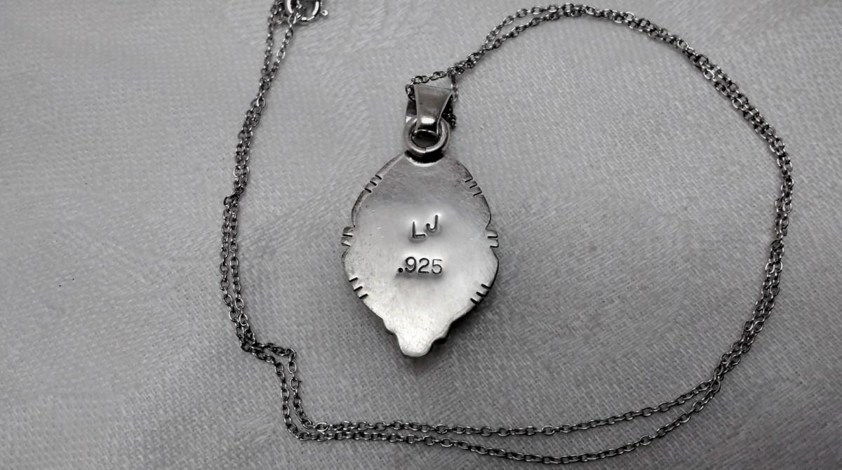 Vintage Navajo Turquoise Hand Signed LJ (Lester Jackson) 18" 925 Necklace
