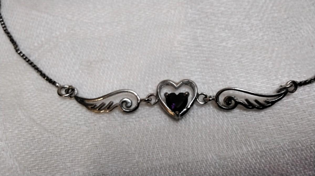 Unique Amethyst Angel Wing 16" 925 Necklace