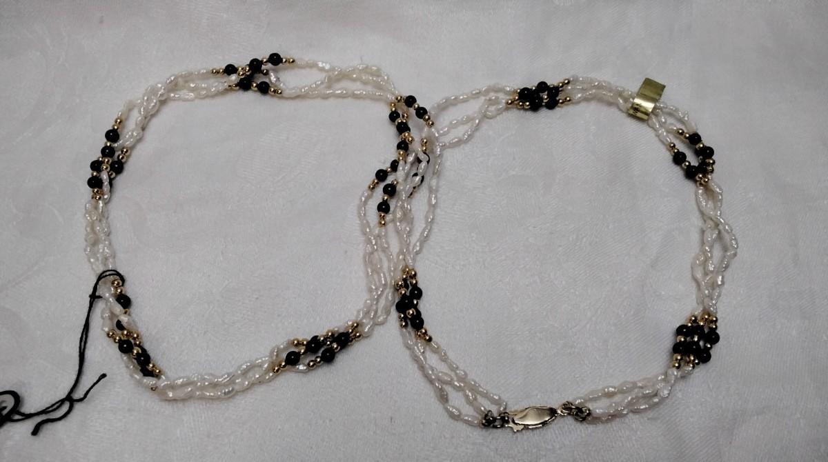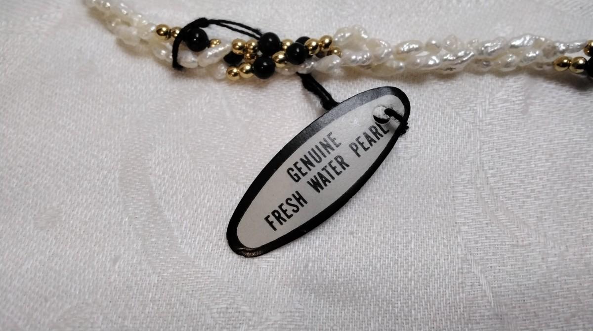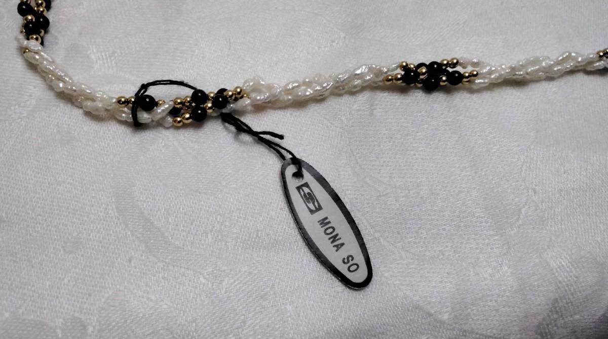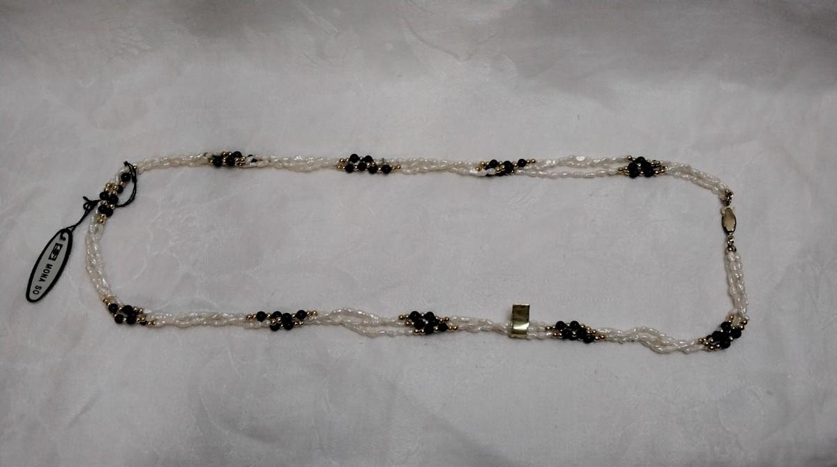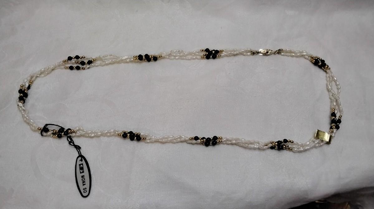 Vintage Mona So 3 Strand Seed Pearls/Onyx 26" Necklace