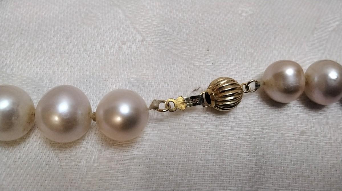 Pale Pink Pearls 18" Necklace 14K Ball Clasp