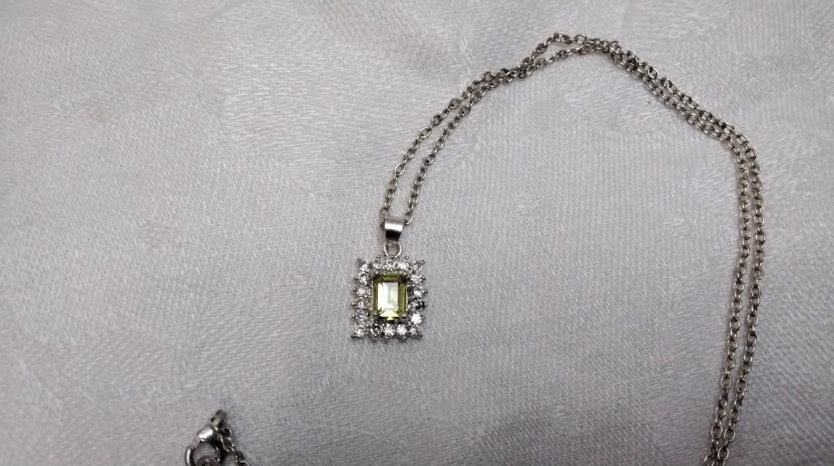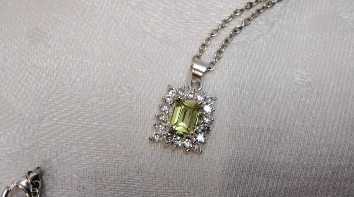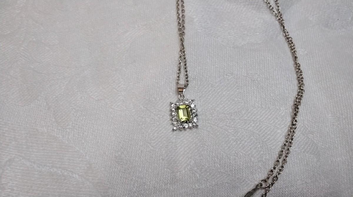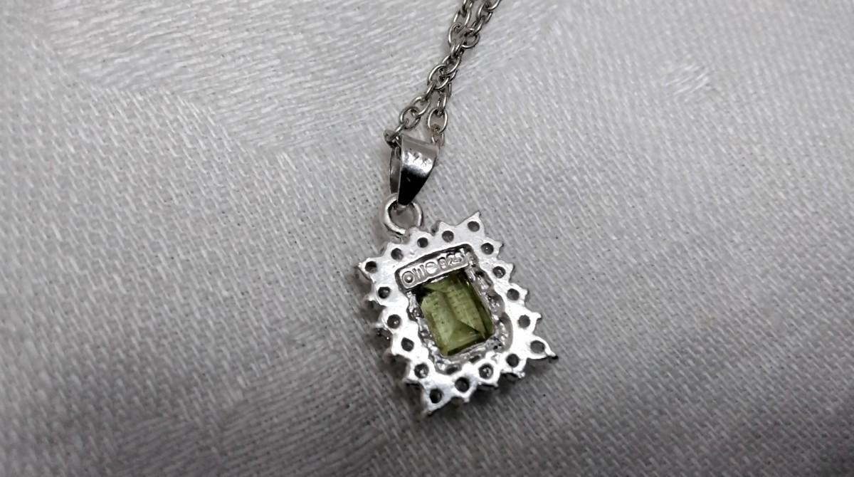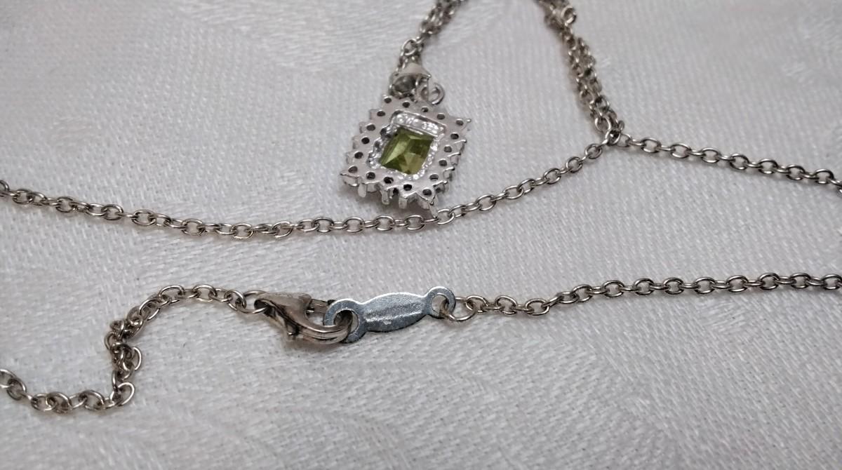 Handcrafted Peridot Surrounded by White Sapphires Orfevrerie Wiskemann Pendant 18" 925 Necklace