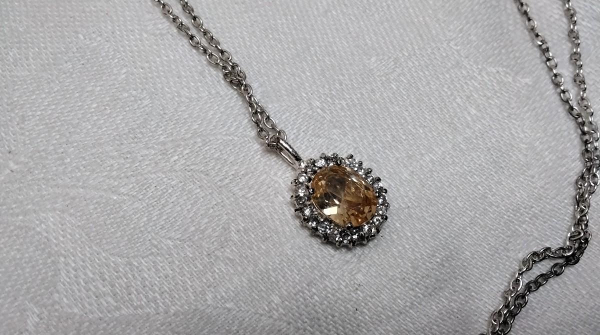 Gorgeous citrine necklace that will definitely draw attention! Hallmarked CW.