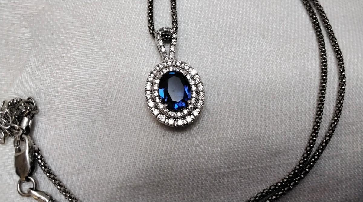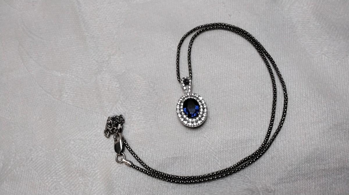 Vintage Sapphire Cz 16" Italian Necklace