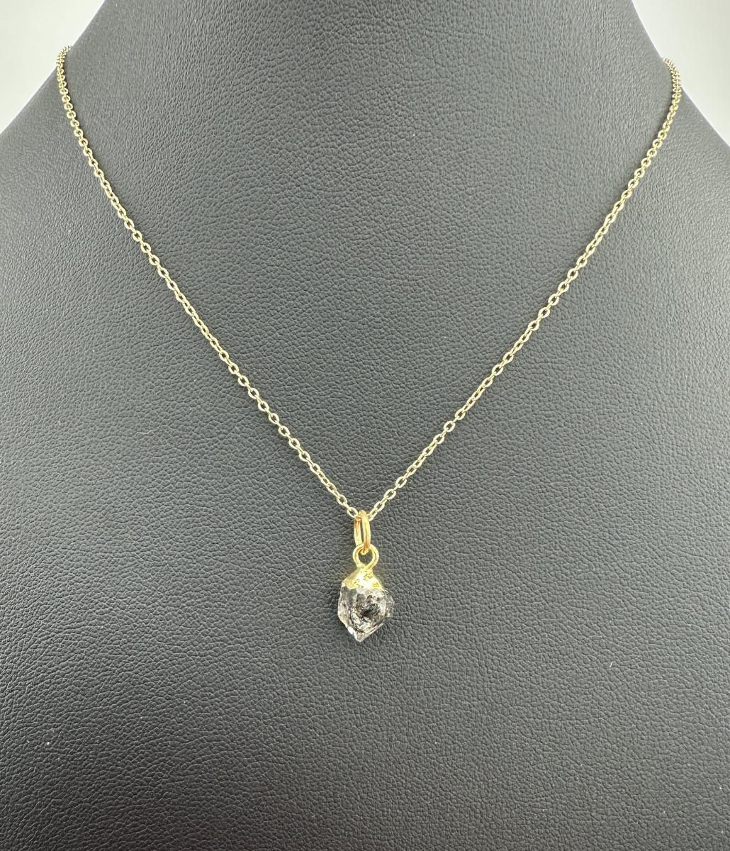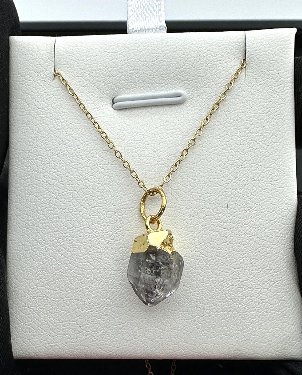 Necklace  925 Silver-Tone, Gold-Plated Herkimer Diamond Natural Gemstone