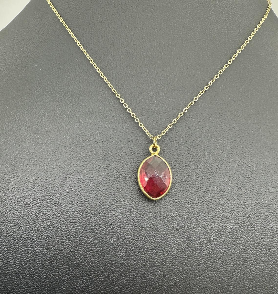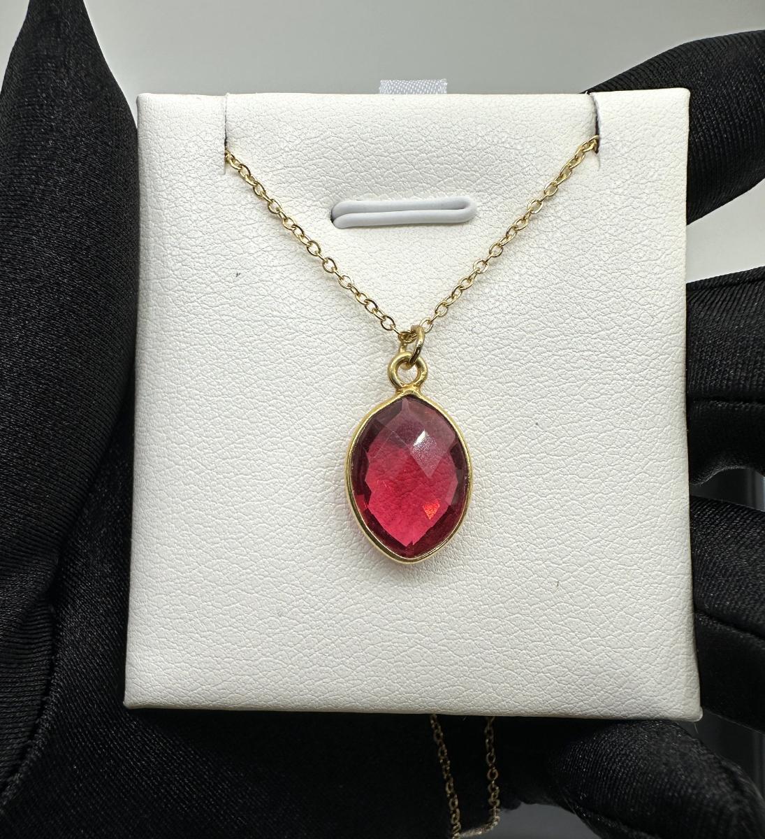 1. Necklace 925 Silver-Tone Gold-Plated Natural Pink Tourmaline Gemstone.