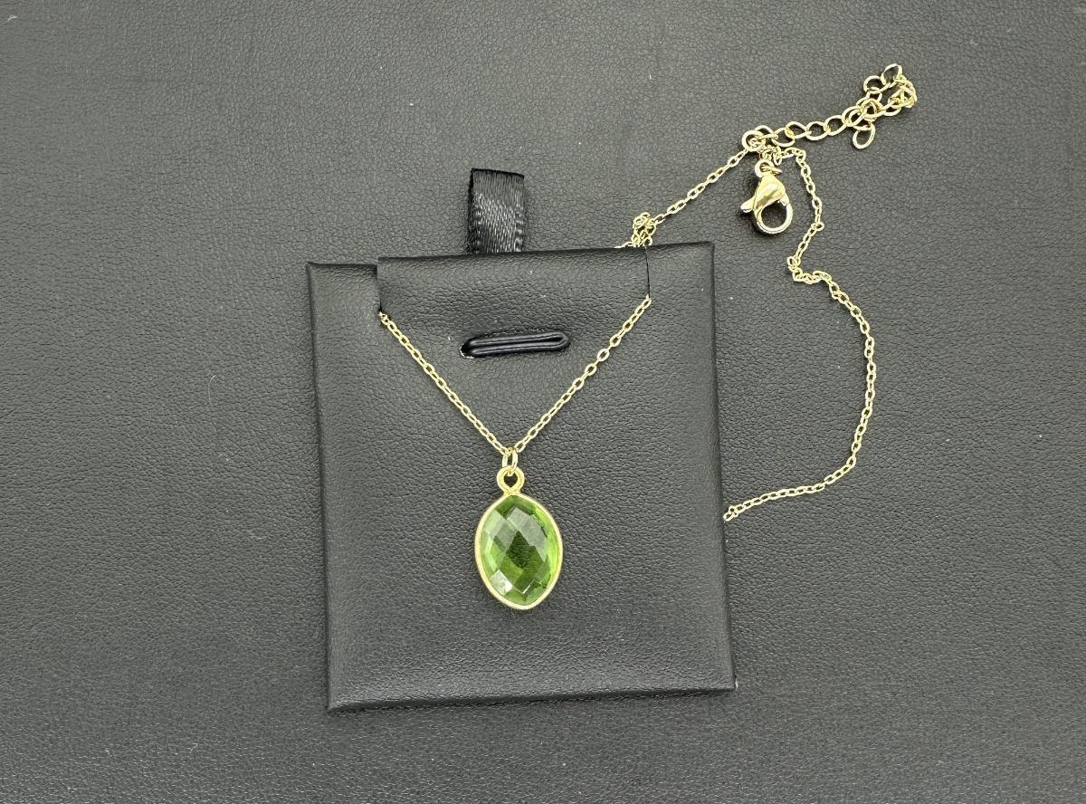 1. Necklace 925 Silver-Tone Gold-Plated Natural Peridot Gemstone.