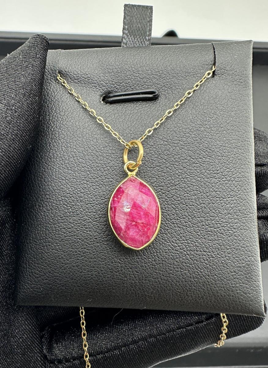 Necklace 925 Silver-Tone, Gold-Plated Natural Ruby Gemstone