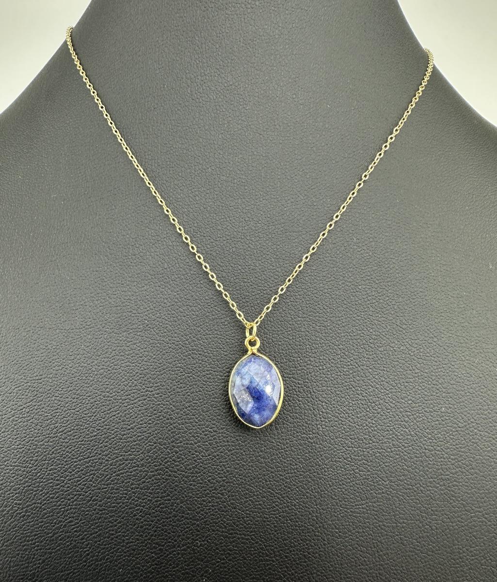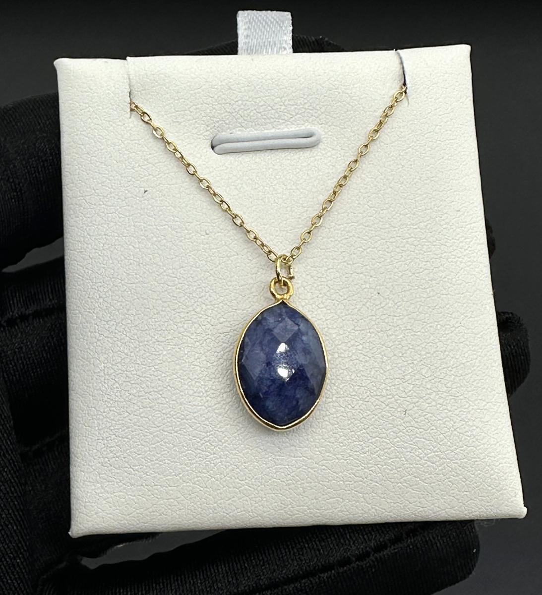 1. Necklace 925 Silver-Tone Gold-Plated Natural Blue Sapphire Gemstone.