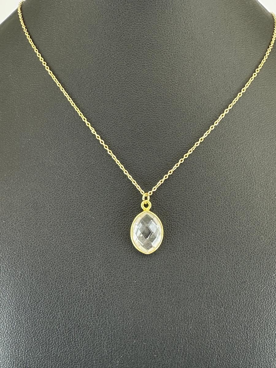 1. Necklace 925 Silver-Tone Gold-Plated Natural Clear Quartz Gemstone