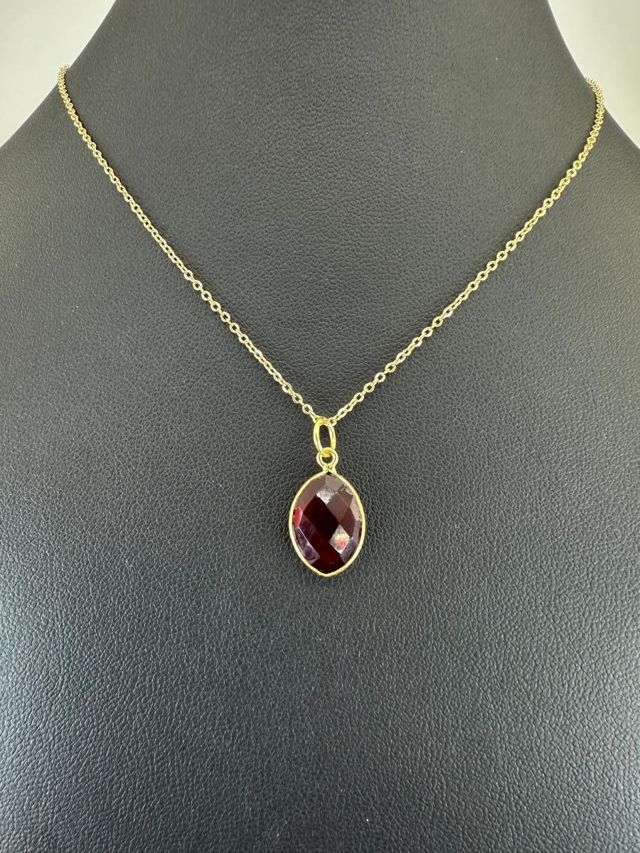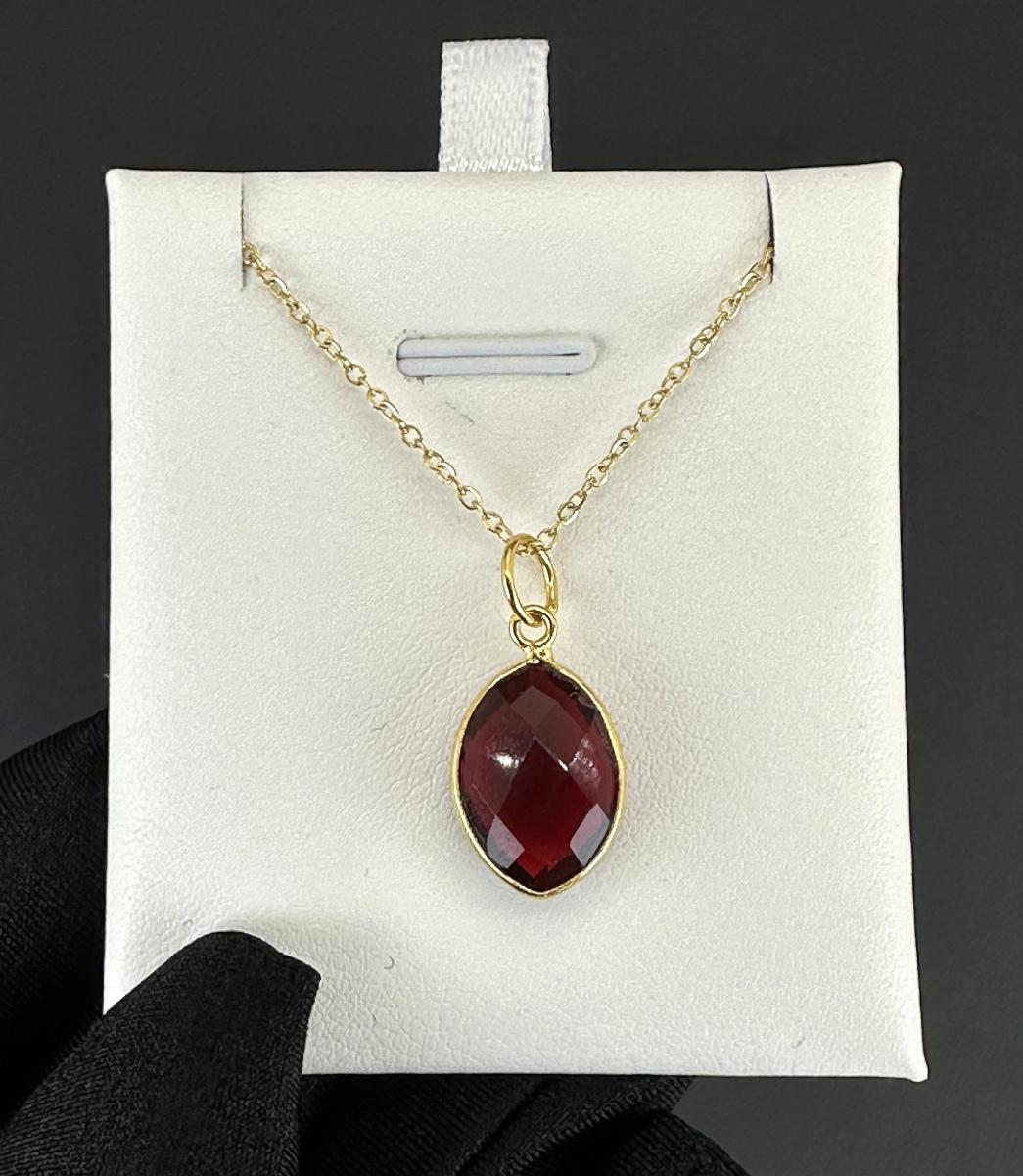 Necklace 925 Silver-Tone, Gold-Plated Natural Garnet Gemstone