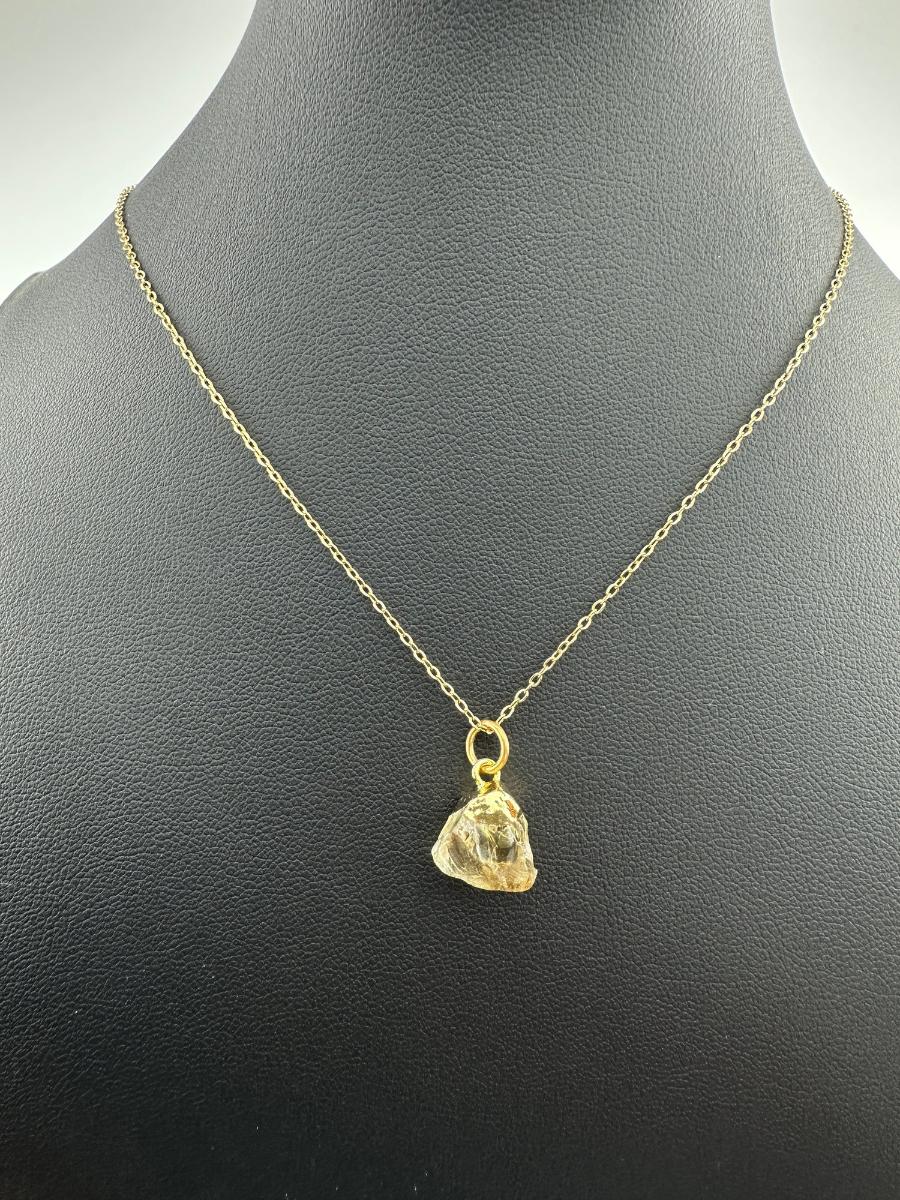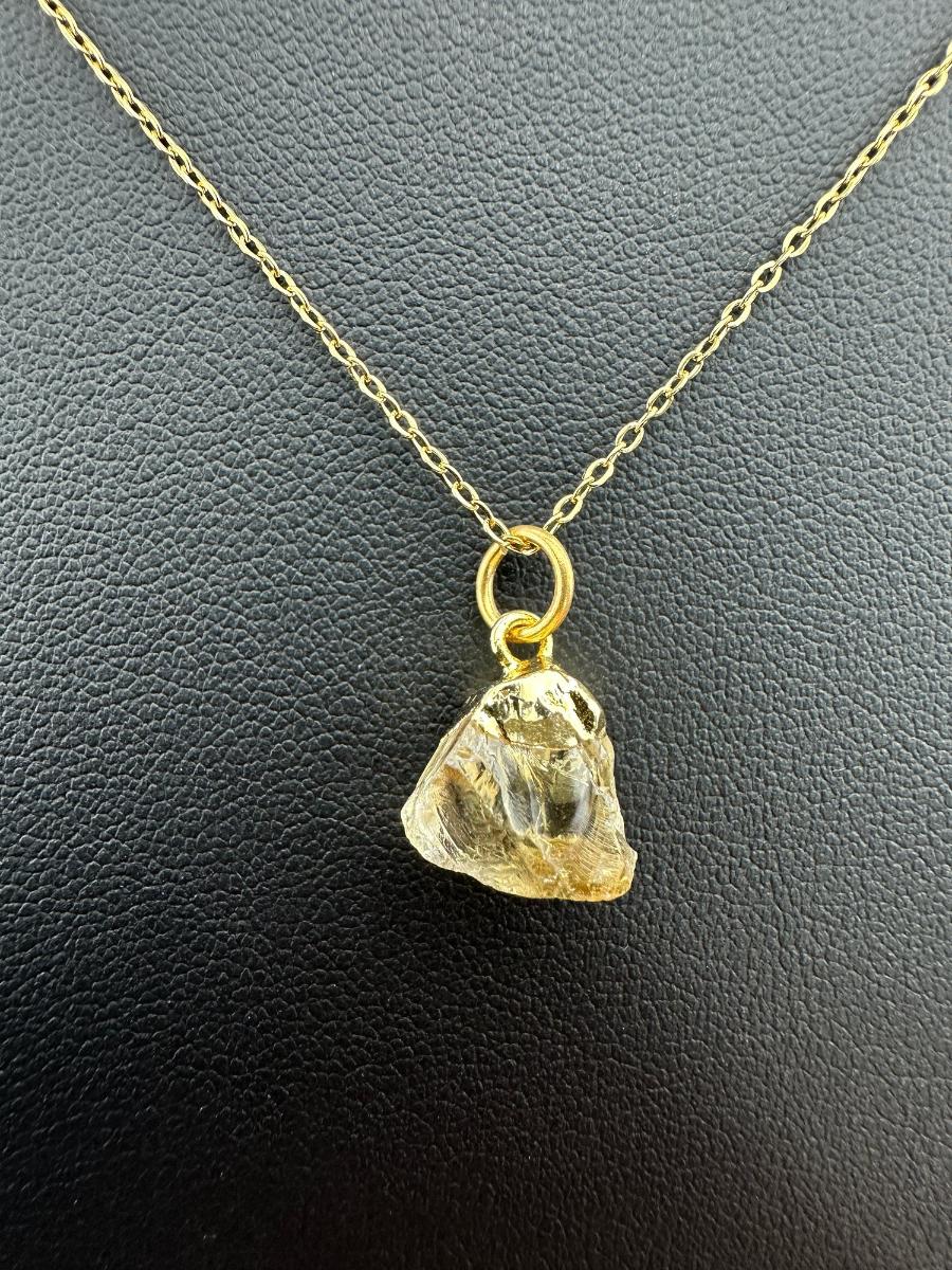 Necklace 925 Silver-Tone, Gold-Plated, Natural Raw Citrine Gemstone