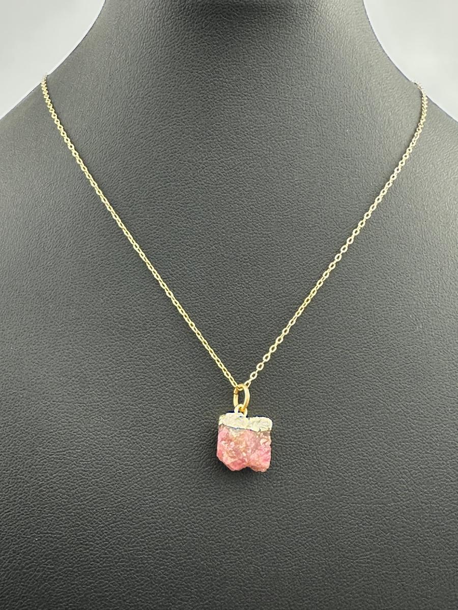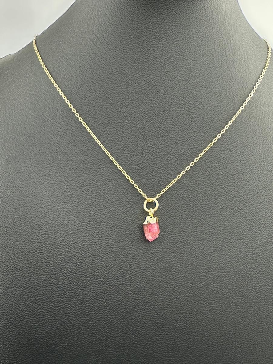 Necklace 925 Silver-Tone, Gold-Plated, Natural Raw Pink Tourmaline Gemstone