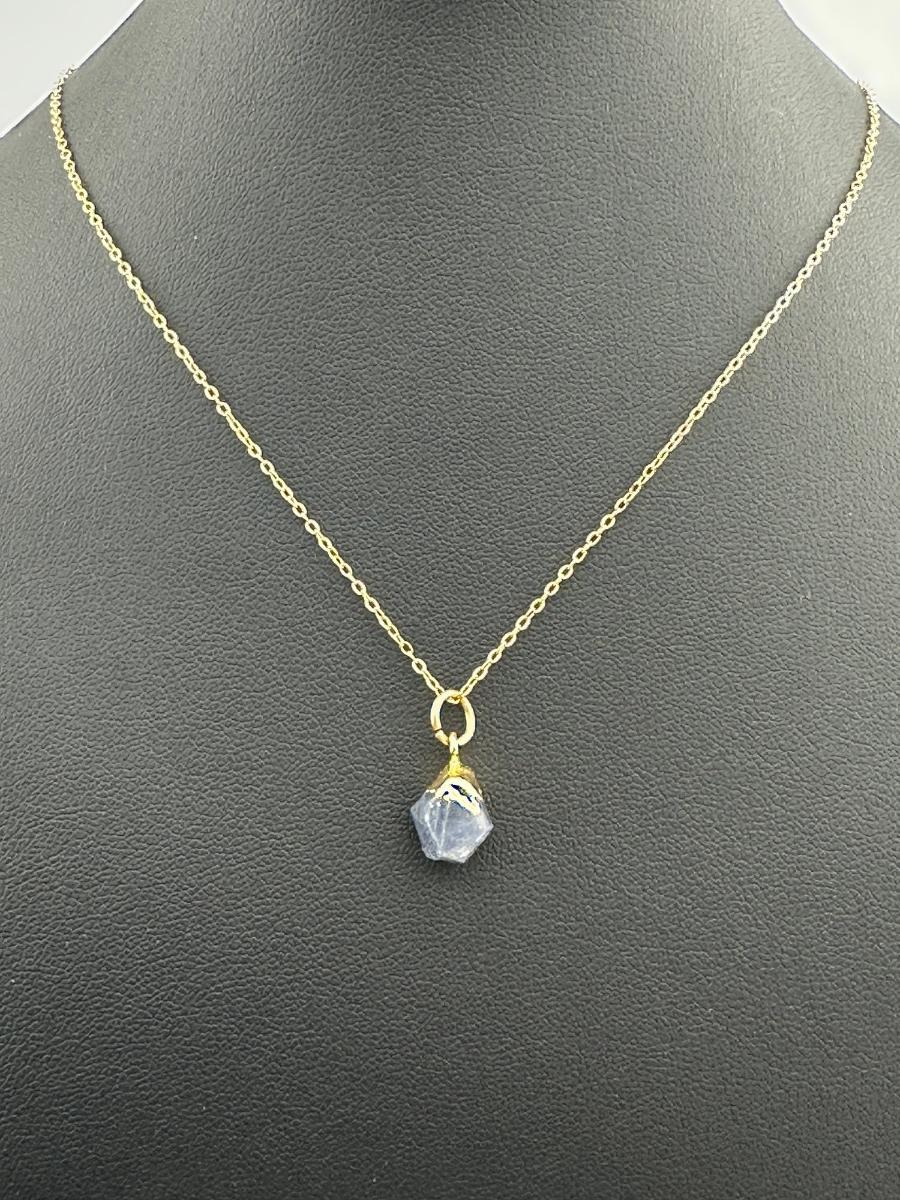 1. Necklace 925 Silver-Tone Gold-Plated Natural Raw Blue Sapphire Gemstone. This piece is unmarked. We were informed it is silver with gold plating; however the exact metal composition has not been independently verified.