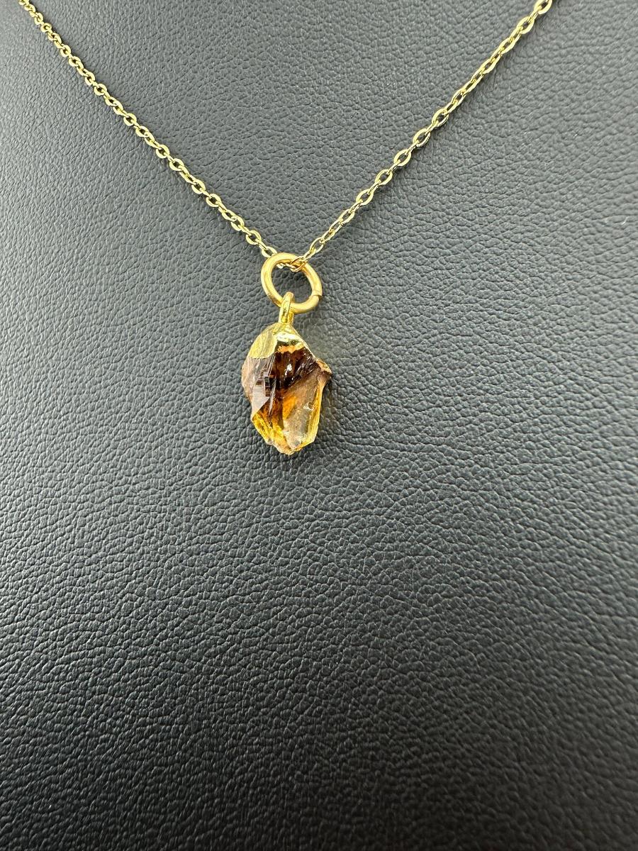 1. Necklace 925 Silver-Tone Gold-Plated Natural Raw Citrine Gemstone -Random Selection- This piece is unmarked. We were informed it is silver with gold plating; however the exact metal composition has not been independently verified.
