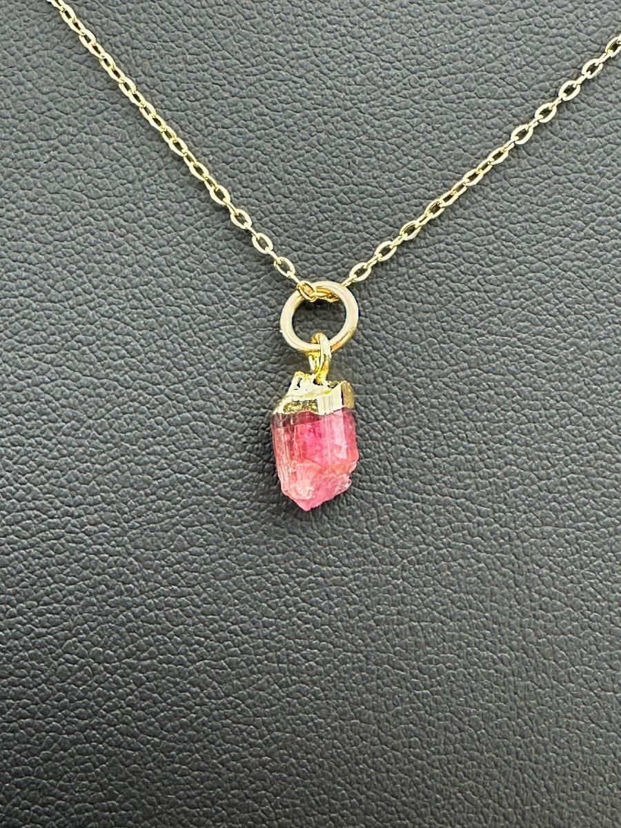 1. Necklace 925 Silver-Tone Gold-Plated Natural Raw Pink Tourmaline Gemstone-Random Selection- This piece is unmarked. We were informed it is silver with gold plating; however the exact metal composition has not been independently verified.