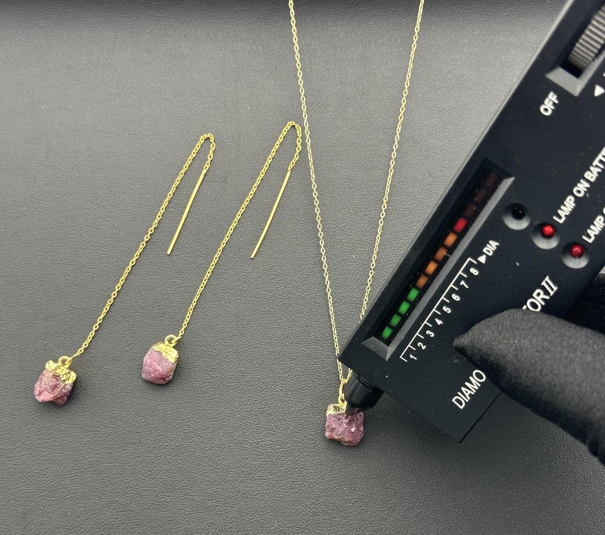 1. Necklace 925 Silver-Tone Gold-Plated Natural Raw Ruby Gemstone. This piece is unmarked. We were informed it is silver with gold plating; however the exact metal composition has not been independently verified.