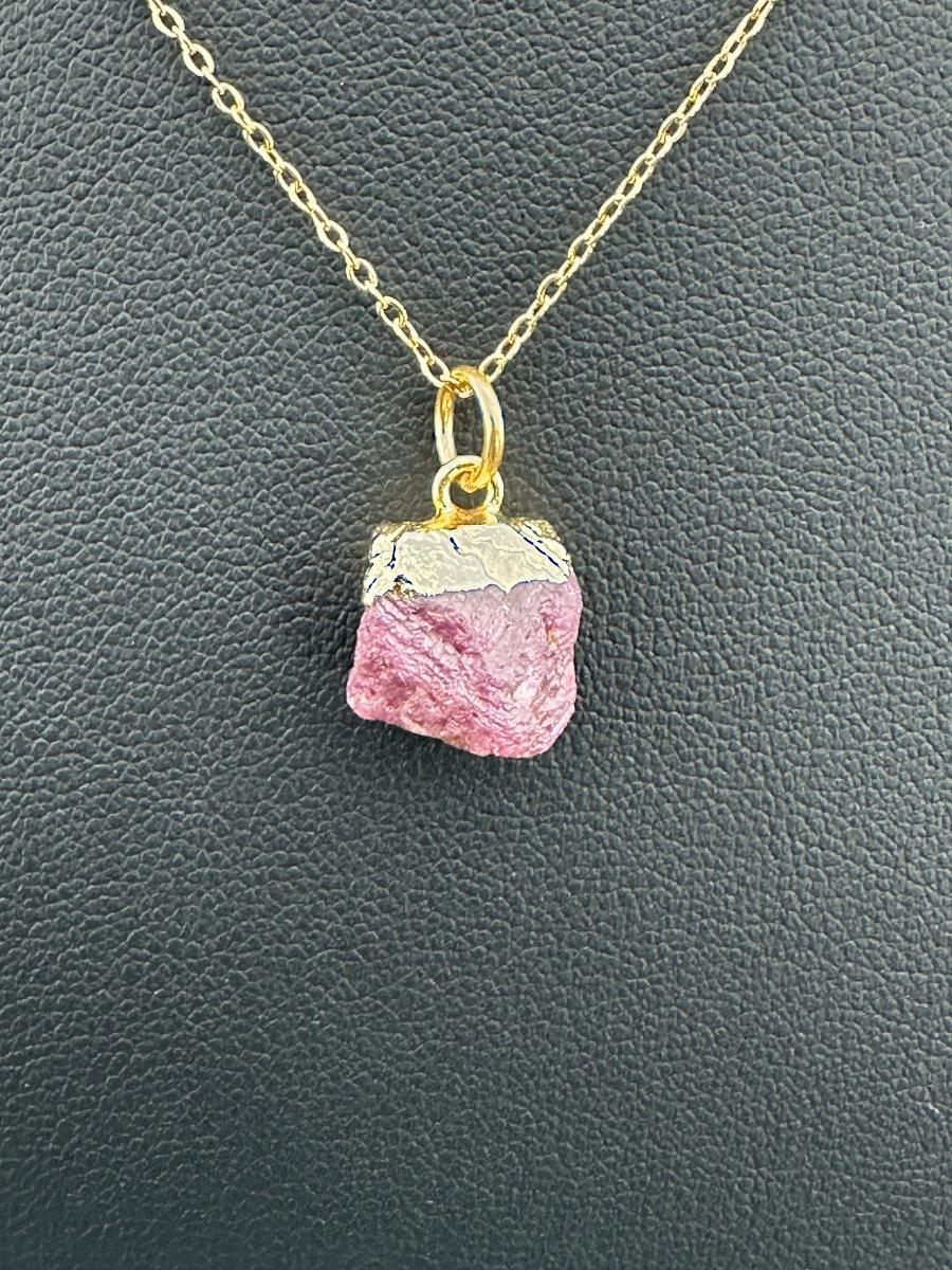 Necklace 925 Silver-Tone, Gold-Plated, Natural Raw Ruby Gemstone