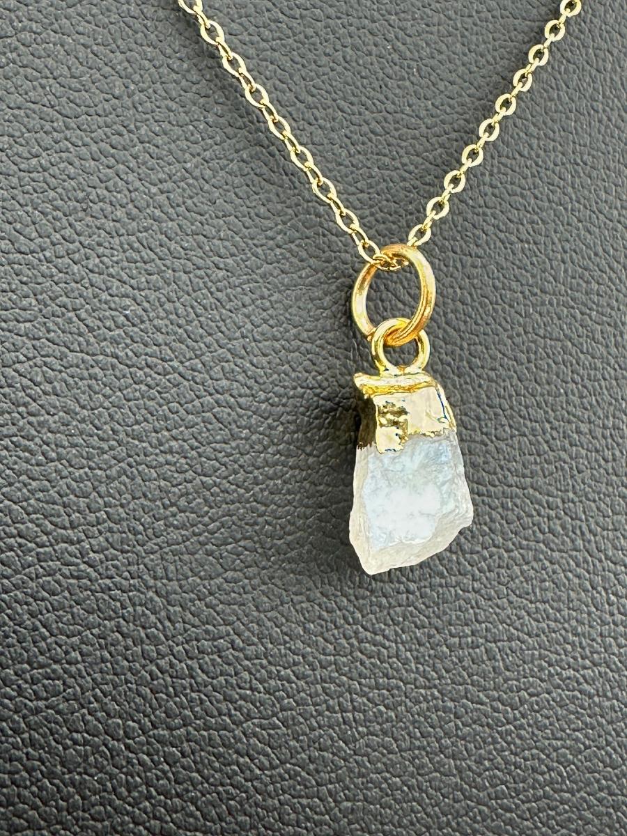Necklace 925 Silver-Tone, Gold-Plated Natural Raw Moonstone Gemstone