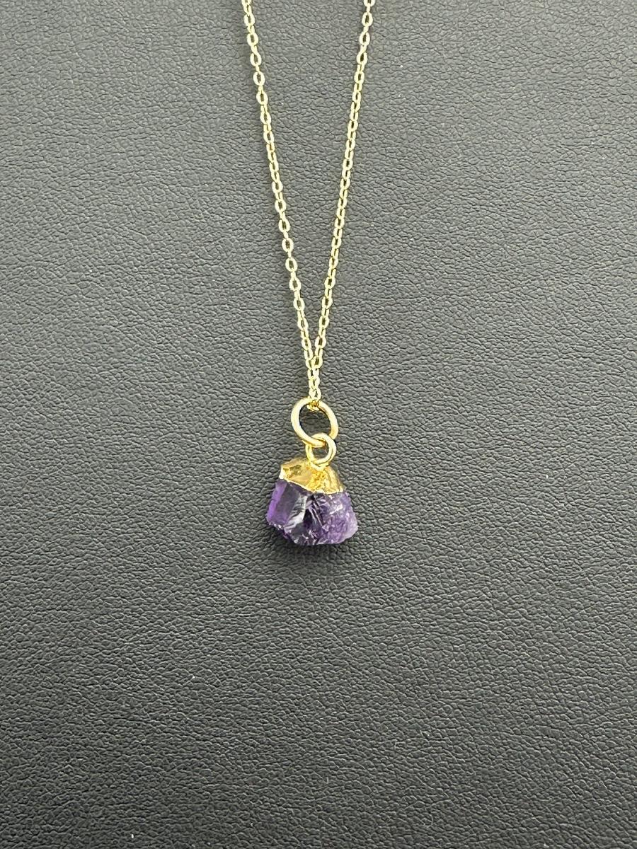 Necklace  925 Silver-Tone, Gold-Plated, Natural Raw Amethyst Gemstone