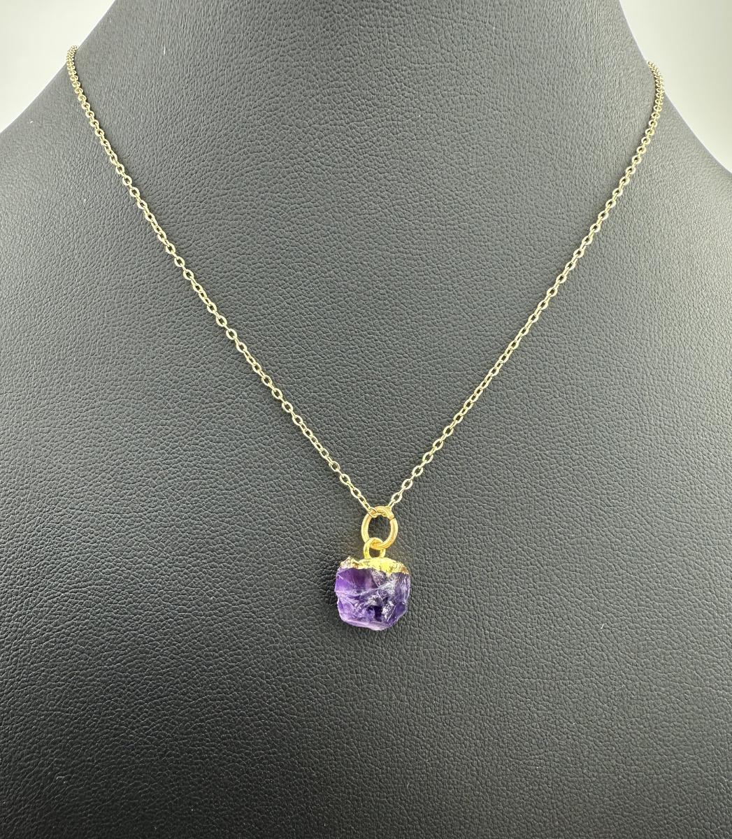 Necklace 925 Silver-Tone, Gold-Plated, Natural Raw Amethyst Gemstone