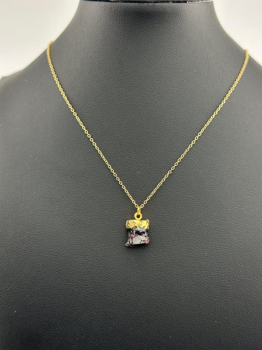 1. Necklace ; 925 Silver-Tone Gold-Plated Natural Raw Garnet Gemstone. This piece is unmarked. We were informed it is silver with gold plating; however the exact metal composition has not been independently verified.