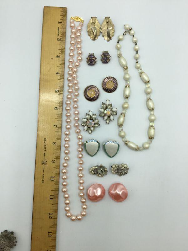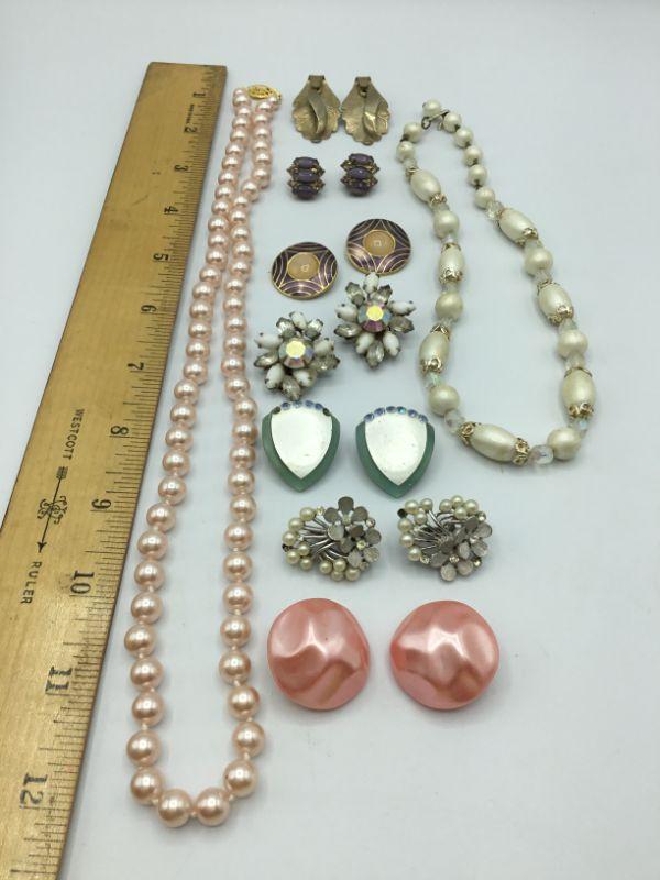 Vintage necklaces and earrings lot. 2 necklaces and 7 pairs of earrings.