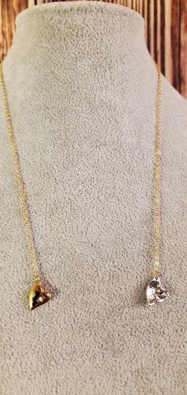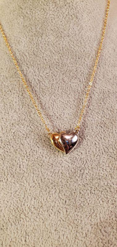 16" Avon 2000 Two-Tone Magnetic Heart necklace and Earrings (pierced)