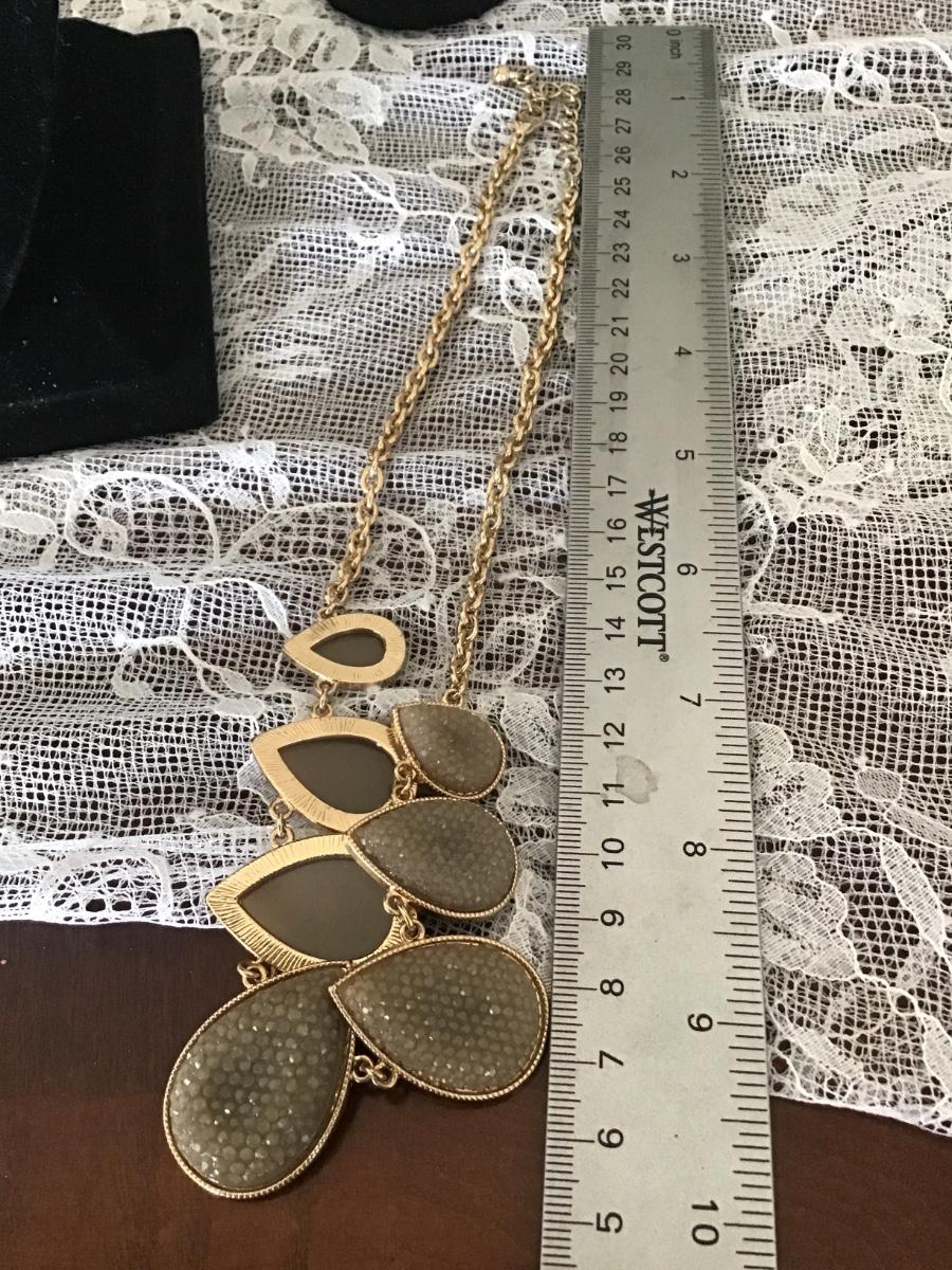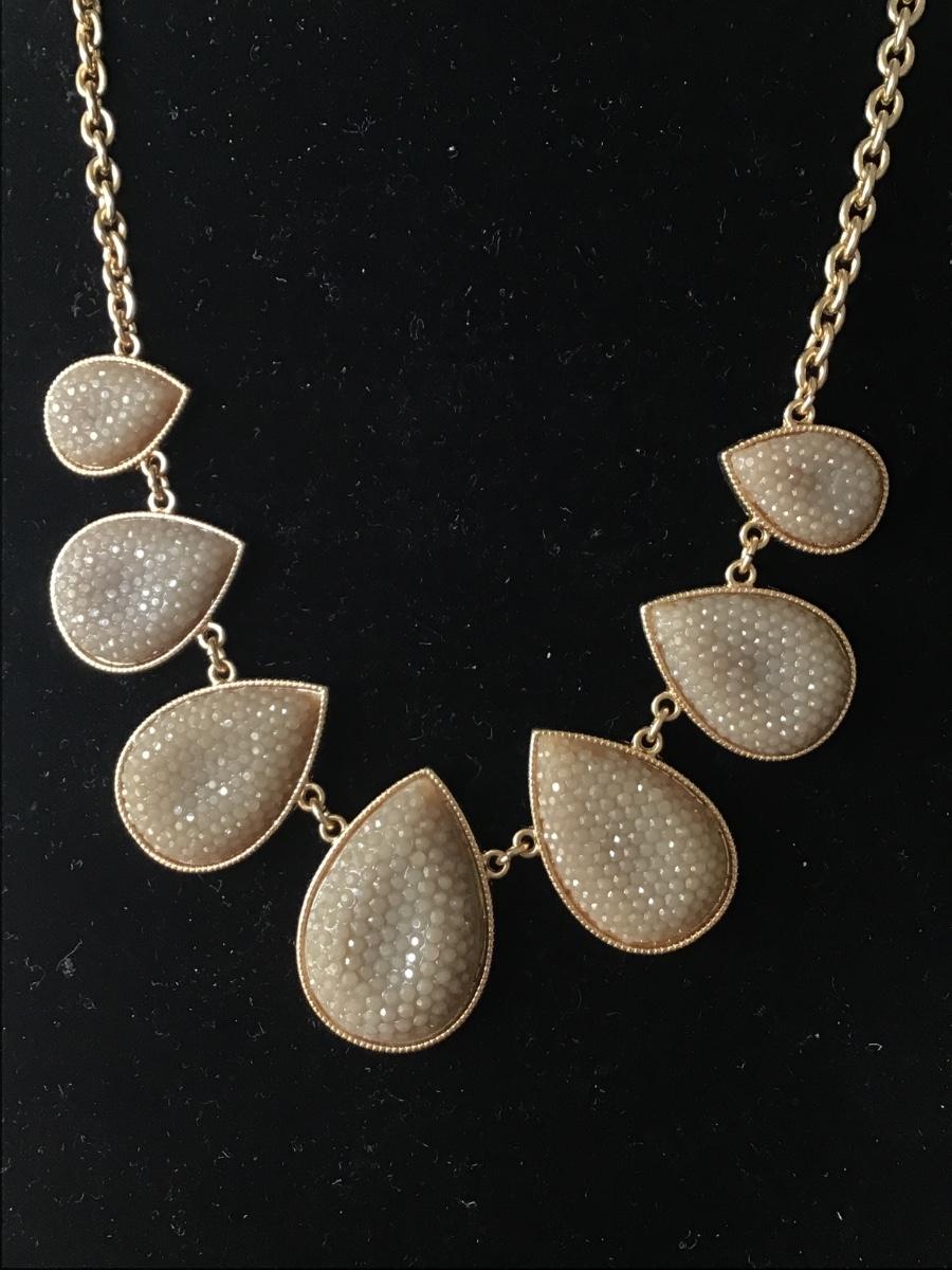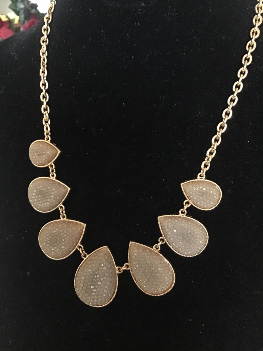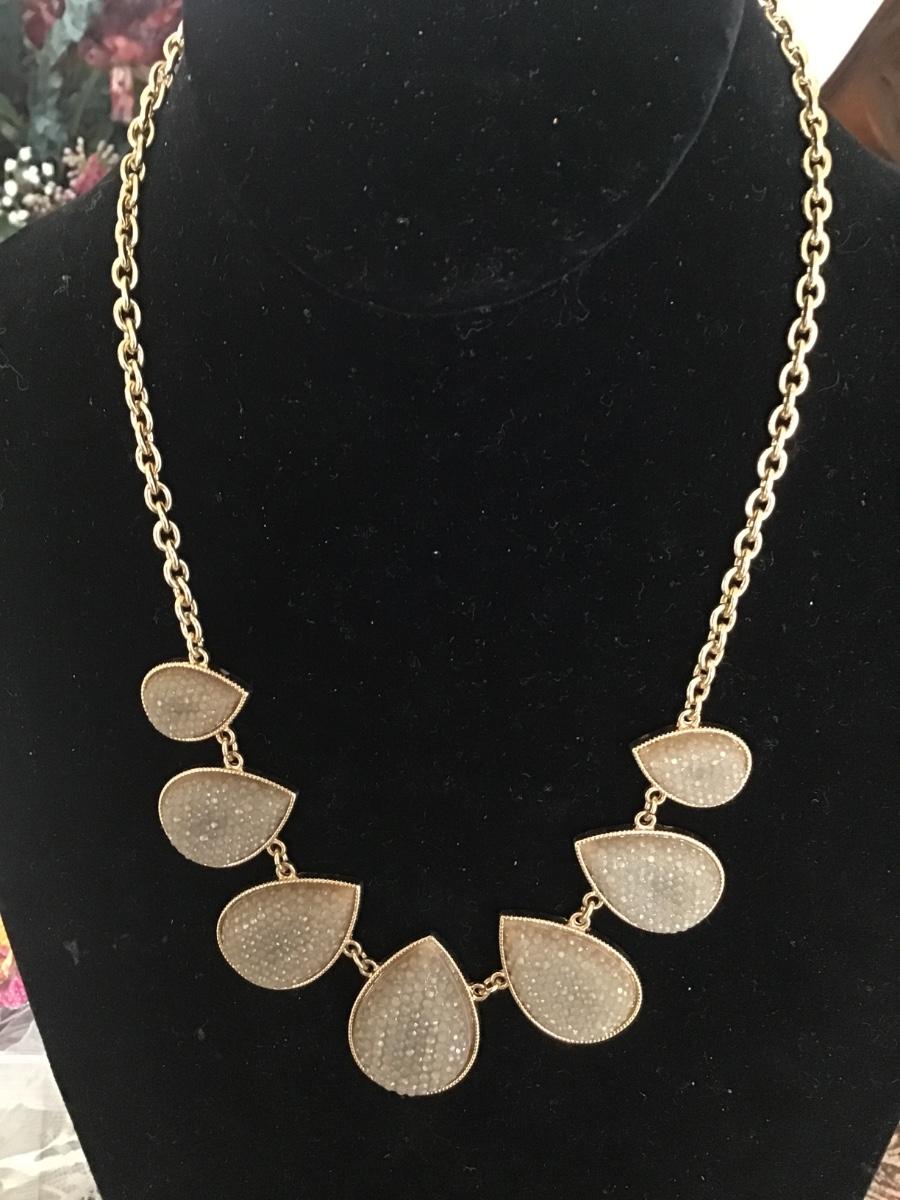 necklace blonde gold tone chain bib Light gray teardrop design Necklace