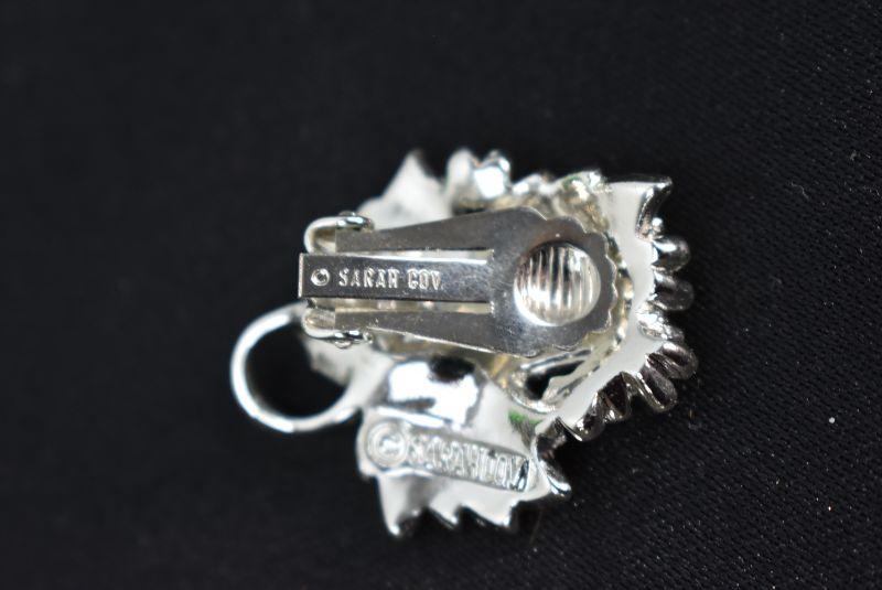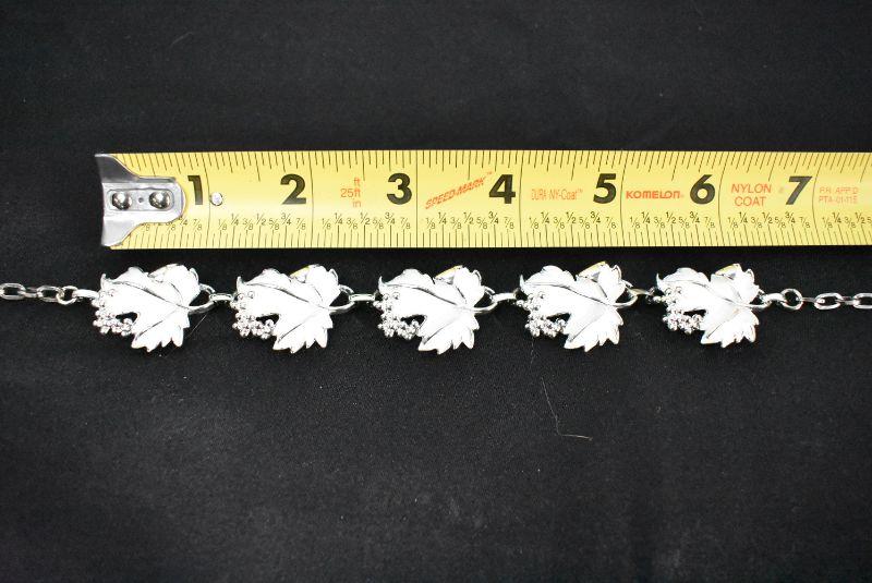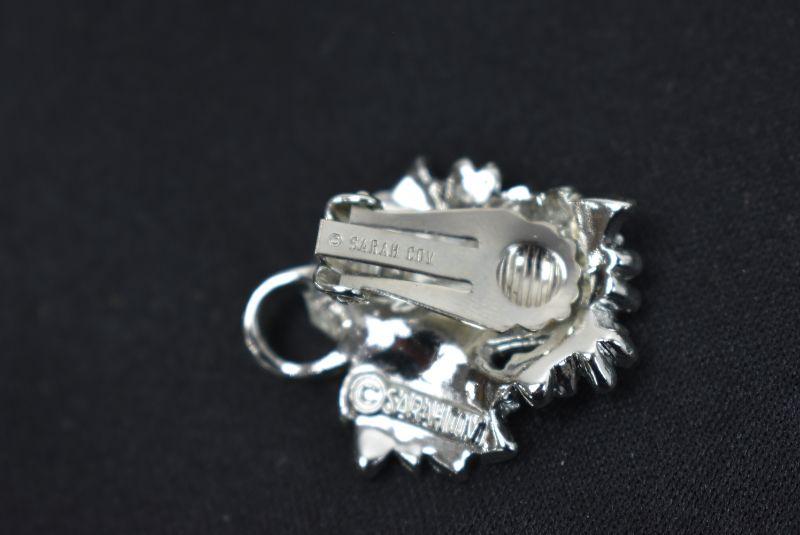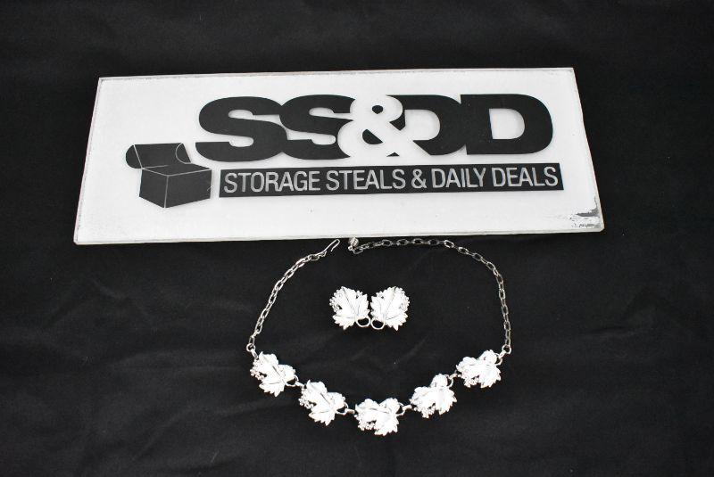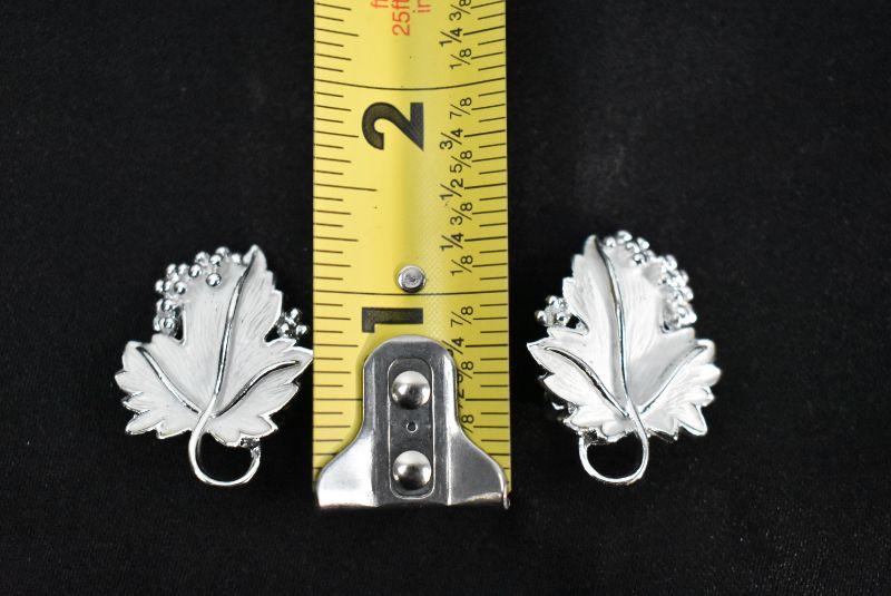 Necklace & Clip-On Earrings, Leaves Design. Silver Tone & White "Sarah Cov" - Vintage