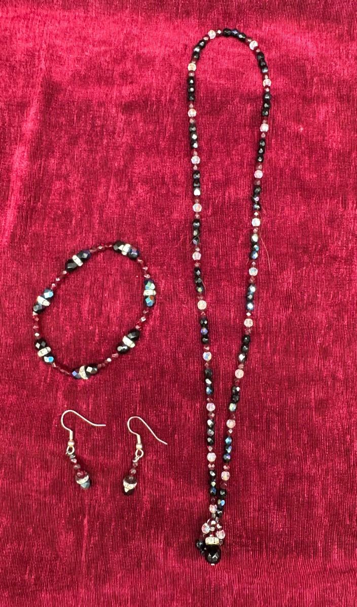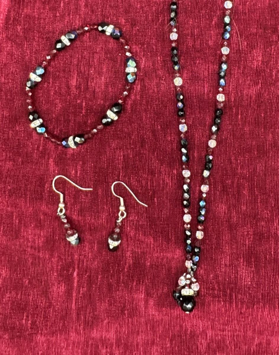 Necklace Earrings and Bracelet Set - Beaded with Rhinestone Rondelles