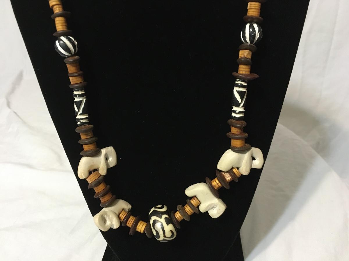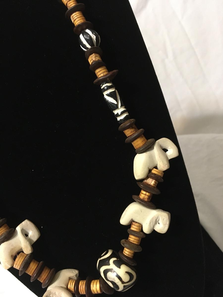 Nice fashion jewelry necklace with polish stone and carved elephants Please see attached photos