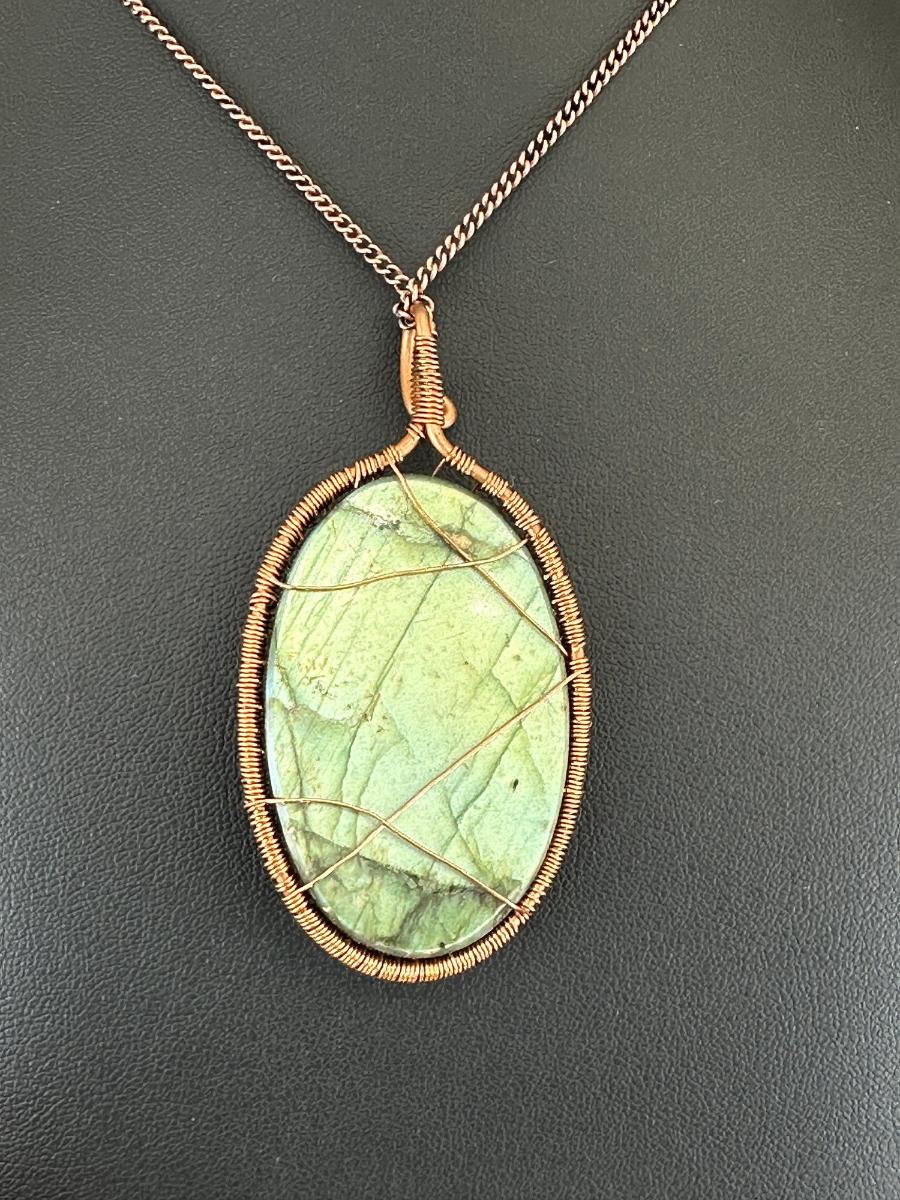 1. Necklace Green Labradorite 925 Sterling Silver Plated Handmade Gemstone