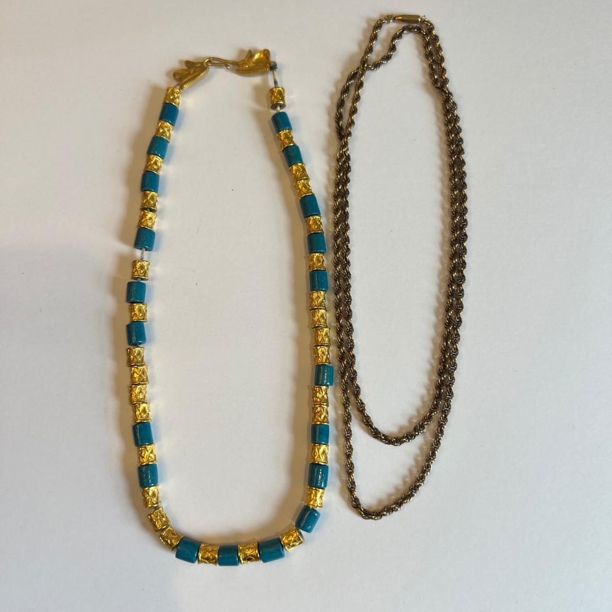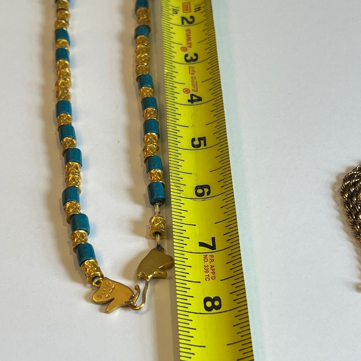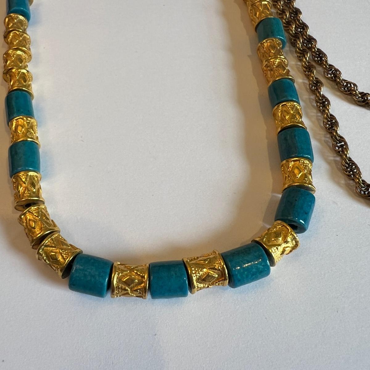 1976 MMA Egyptian Revival Faience Necklace + Krementz Chain - Designer Vintage Costume Jewlery