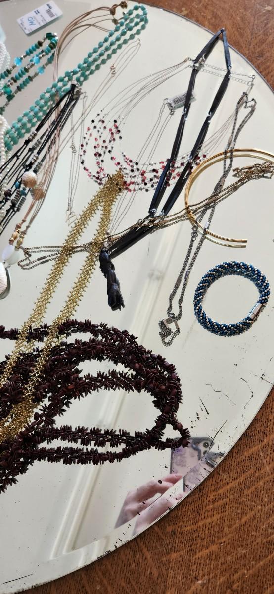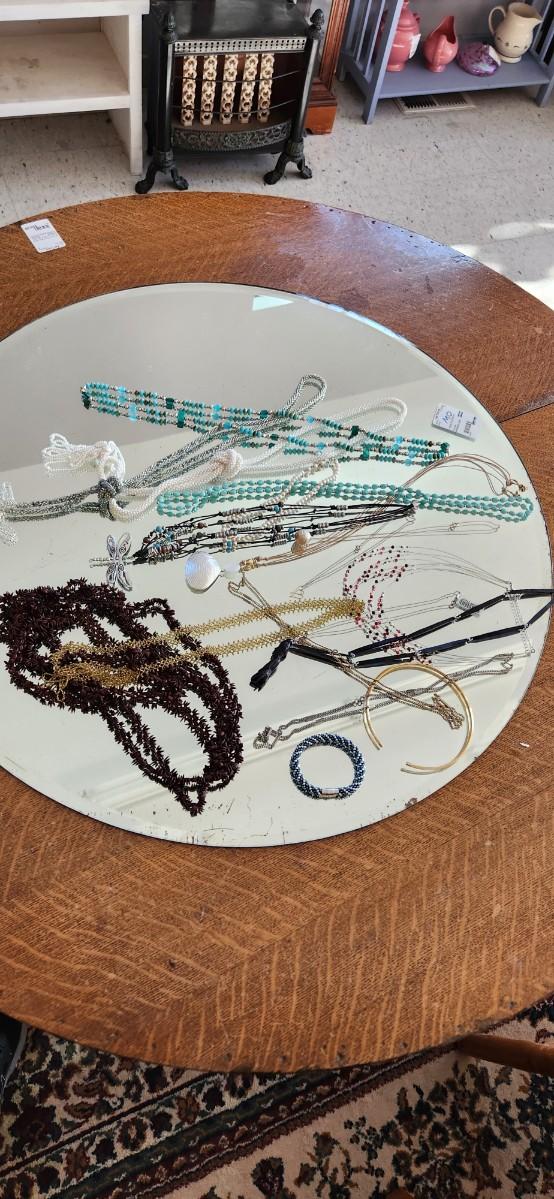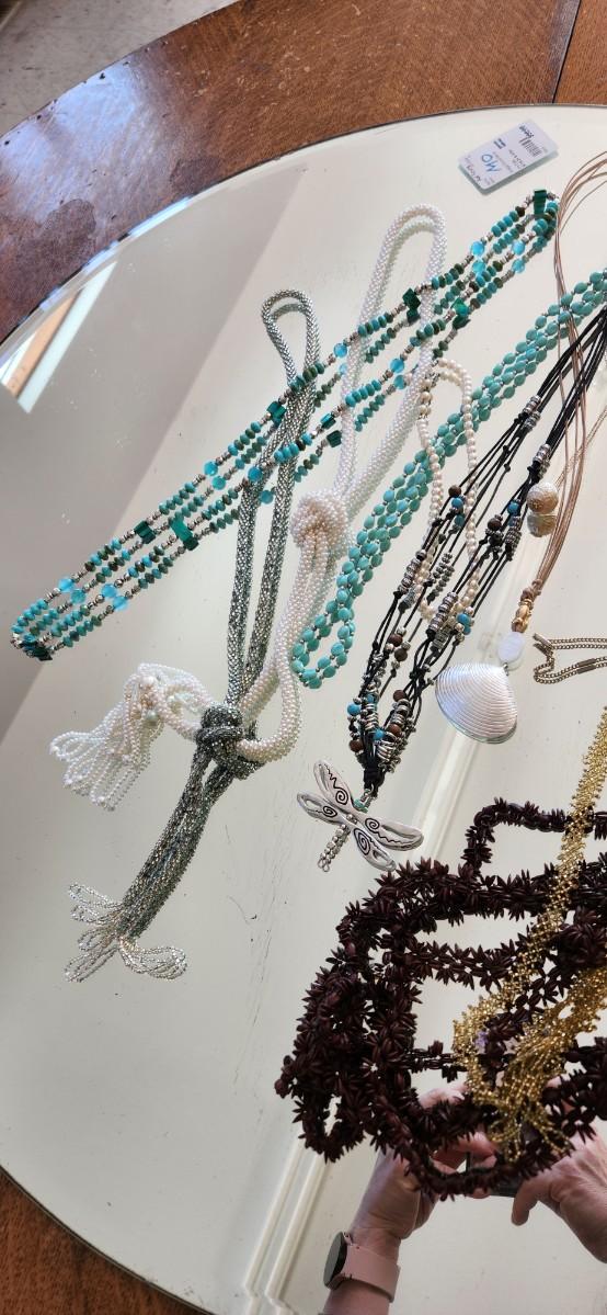 Neat lot of necklaces..and one bracelet. Check out the carved ebony piece!