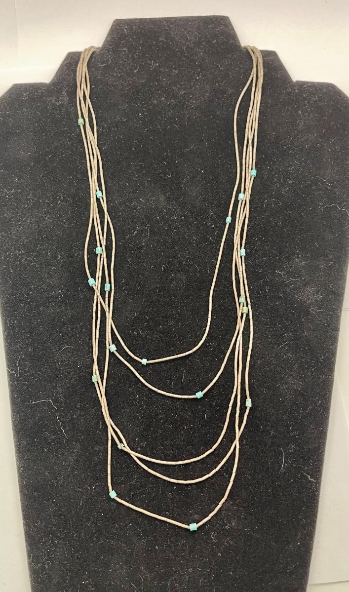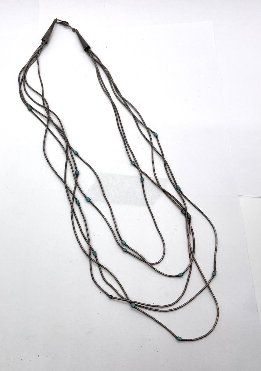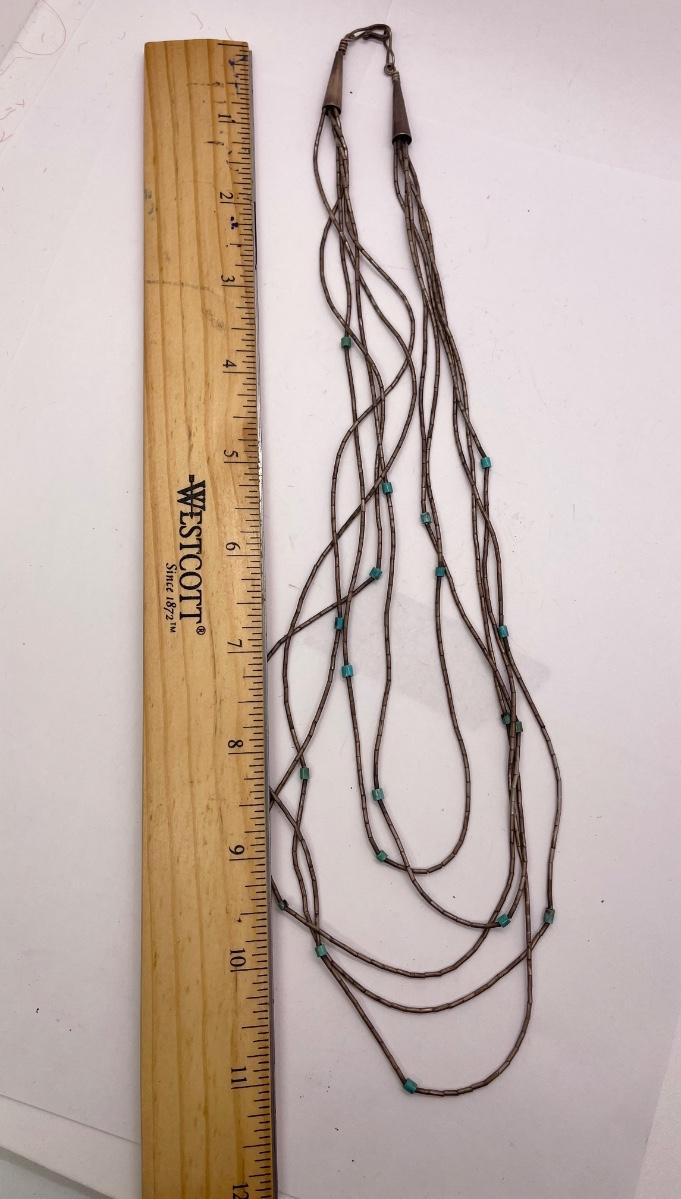 Multi Strand Silver and Turquoise Beaded Necklace