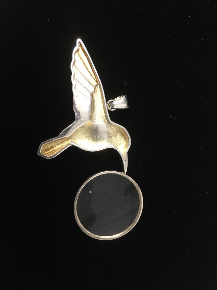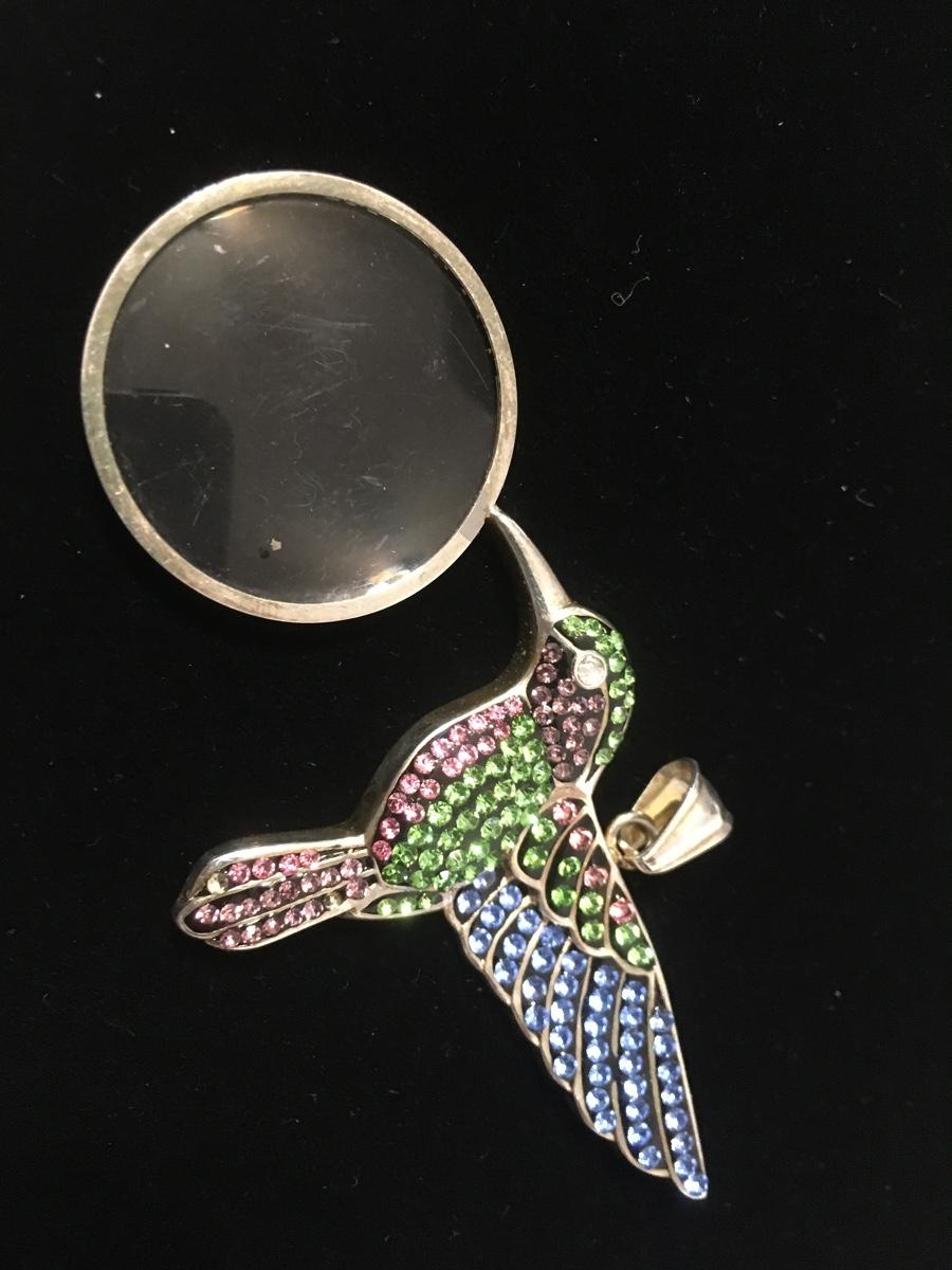 Nice hummingbird necklace pendant with magnifying glass please see attached photos