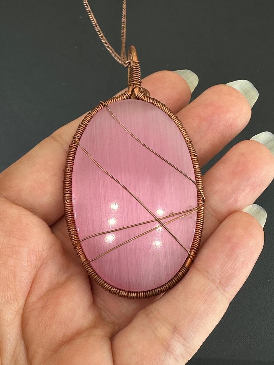 1. Necklace Pink Cat Eye 925 Sterling Silver Plated Handmade Gemstone